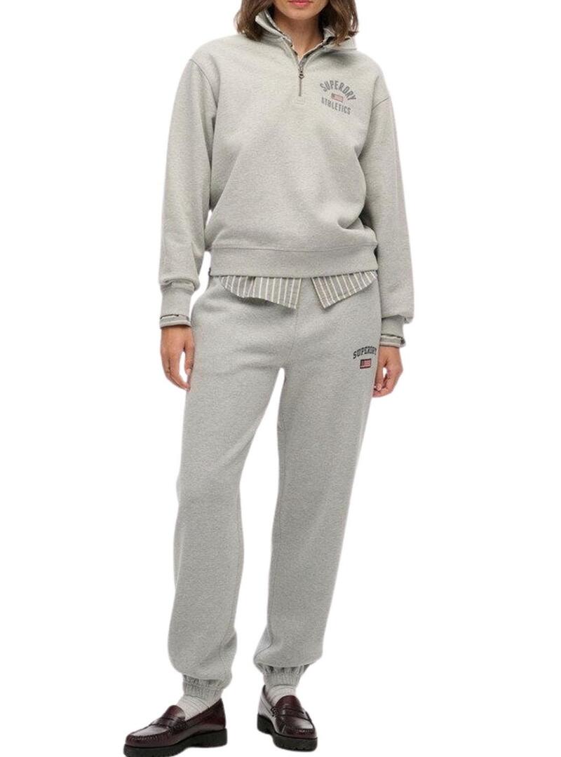 Pantaloni sportivi Superdry. Modello Athletic. Colore grigio. Stile jogger. Vita e fondo elastici. Tasche laterali. Logo ricamato sul fianco con bandiera. Taglio slim.