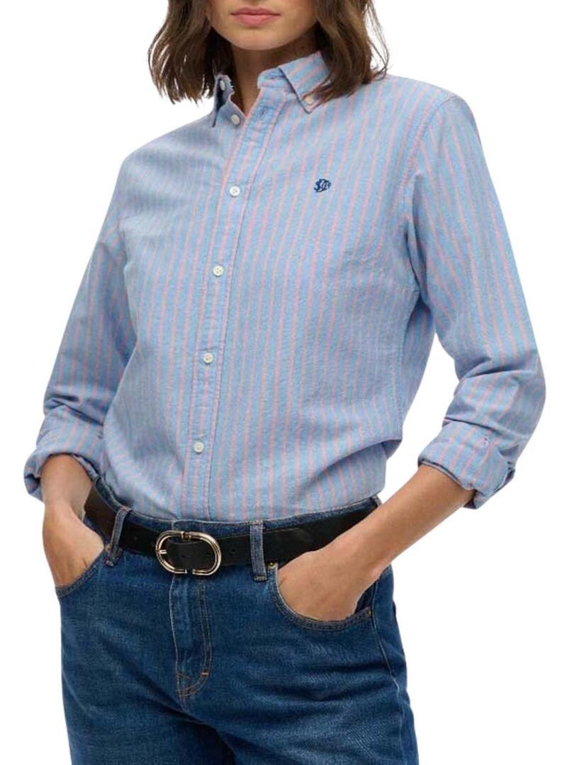 Camicia Superdry a righe rosa e bianche Oxford per donna