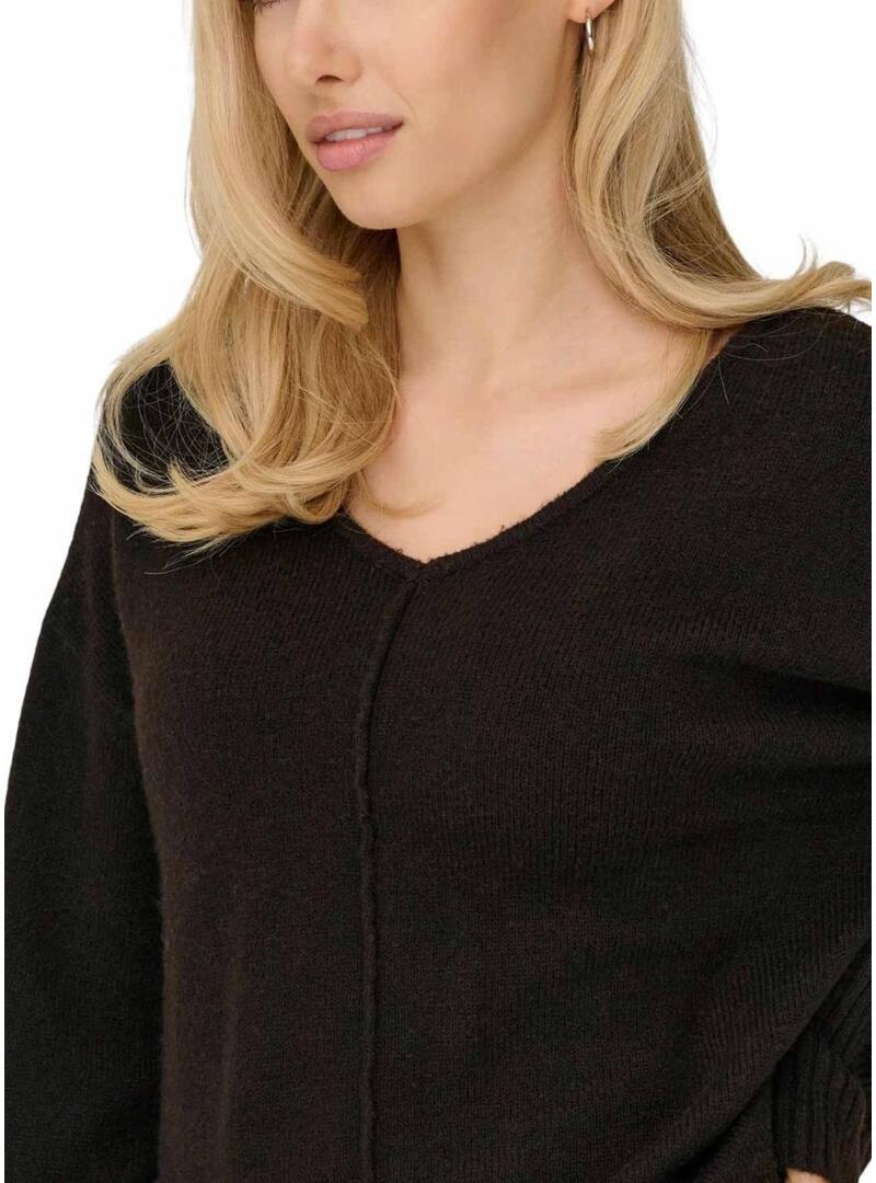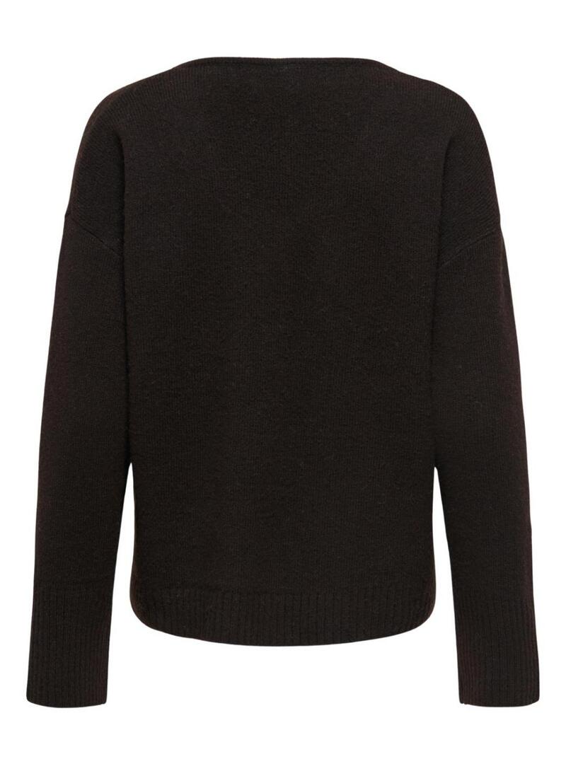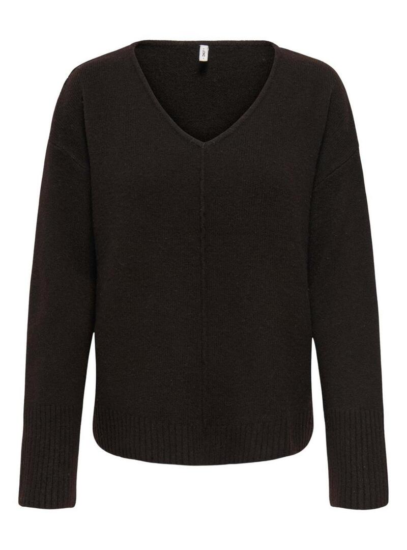 Maglia Only. Modello Whitney. Colore marrone. Scollatura a V. Cucitura centrale. Estremità a coste. Vestibilità ampia. Spalle cadenti. Tessuto morbido al tatto.