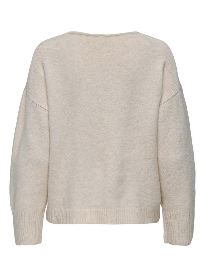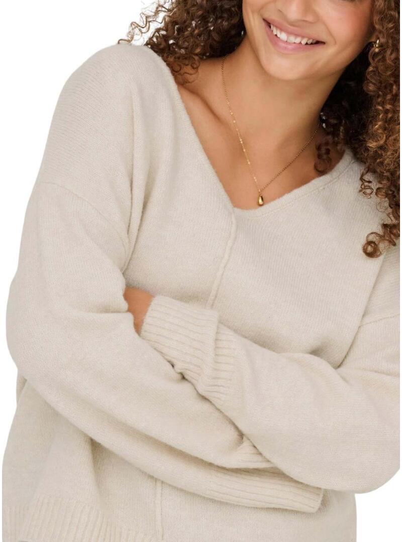 Maglia Only. Modello Whitney. Colore beige. Scollo a V. Cucitura centrale. Estremità a coste. Vestibilità oversize. Spalle cadenti. Tessuto morbido al tatto.
