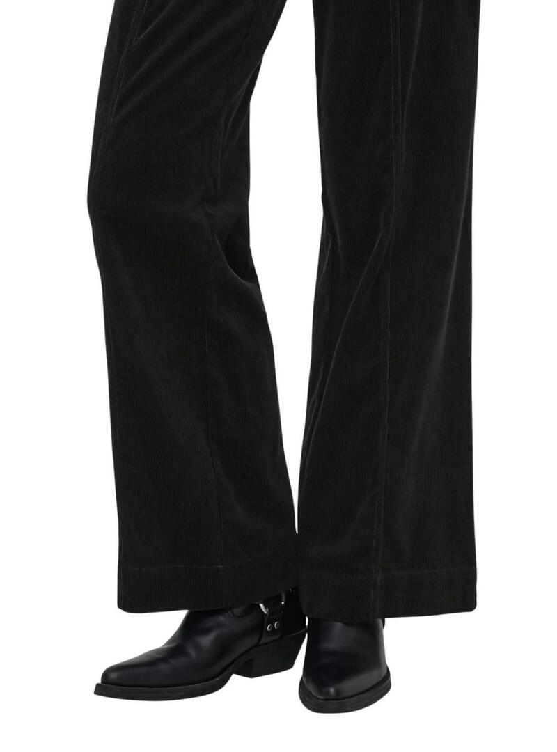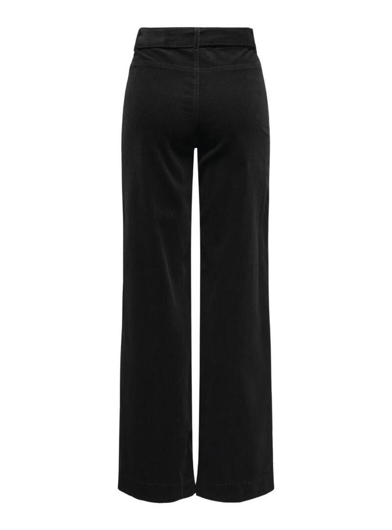 Pantaloni Only. Modello Madison. Colore nero. Vita alta con cintura autoannodante. Gamba larga. Tessuto a coste di velluto a coste. Morbido al tatto.