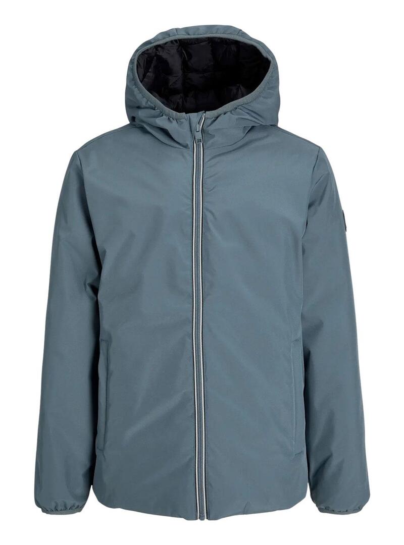 Giacca Jack and Jones. Reversibile. Colore grigio. Interno imbottito colore nero. Con cappuccio. Manica lunga. Chiusura con cerniera. Tasche laterali. Etichetta adesiva sulla manica.