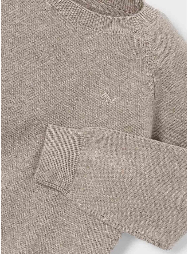 Maglione Mayoral. Manica lunga. Collo rotondo. Modello basic. Colore beige. Orli a costine. Ricamo sul petto. Taglio regolare.