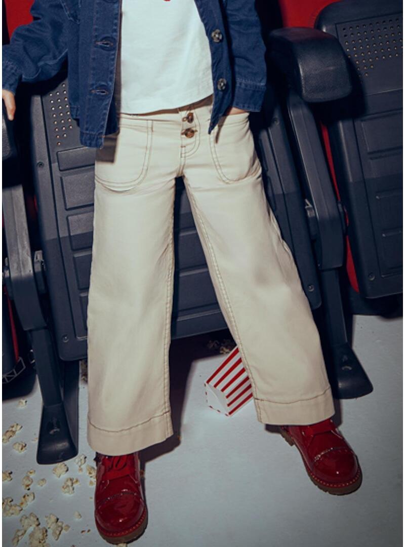 Pantaloni Mayoral. Colore beige. Elastico regolabile con bottoni all'interno. Chiusura con bottoni nella parte anteriore. Tessuto a coste. Tasche nella parte anteriore. Tasche posteriori. Cuciture a contrasto. Gamba larga.