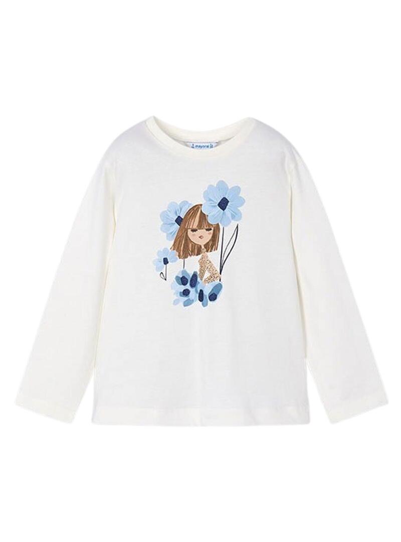 Set Mayoral. Maglietta color beige. Collo rotondo. Manica lunga. Stampa sulla parte anteriore. Due leggings. colore navy e beige. Vita in gomma. Vestibilità aderente.