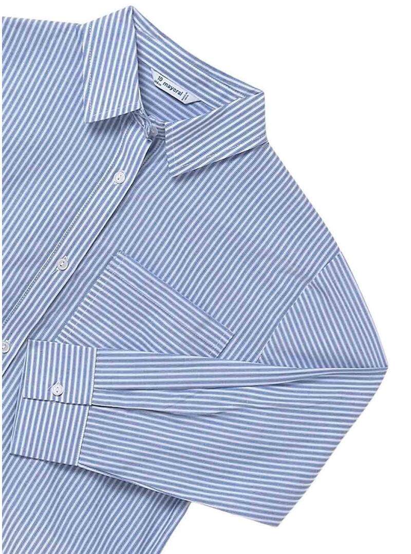Camicia Mayoral. Manica lunga. Stampato a righe. Tasca sul petto. Colore blu. Fondo arrotondato. Chiusura con bottoni sul davanti. Tessuto di popeline.