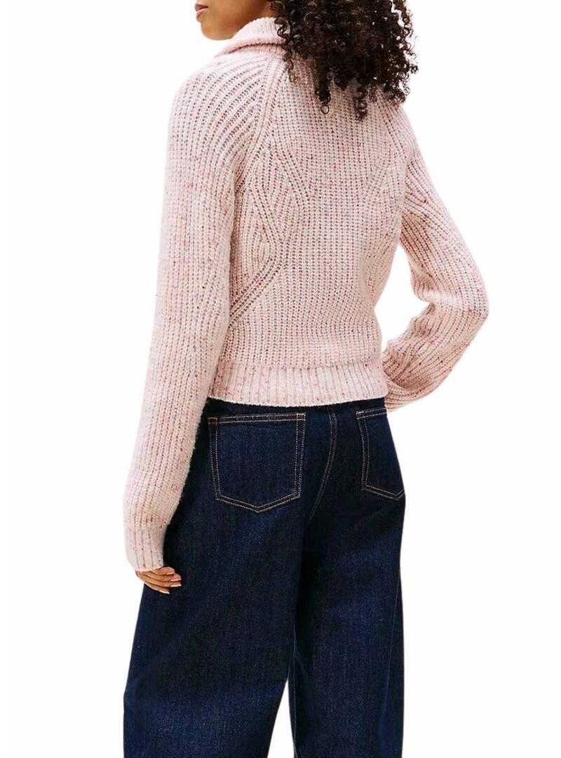 Maglia Tommy Jeans. Collo alto con mezza zip. Tessuto a coste. Colore rosa. Logo di Tommy Jeans in carattere Serif Script ricamato in fondo. Taglio ampio.