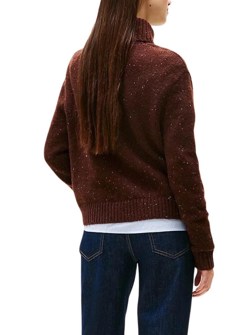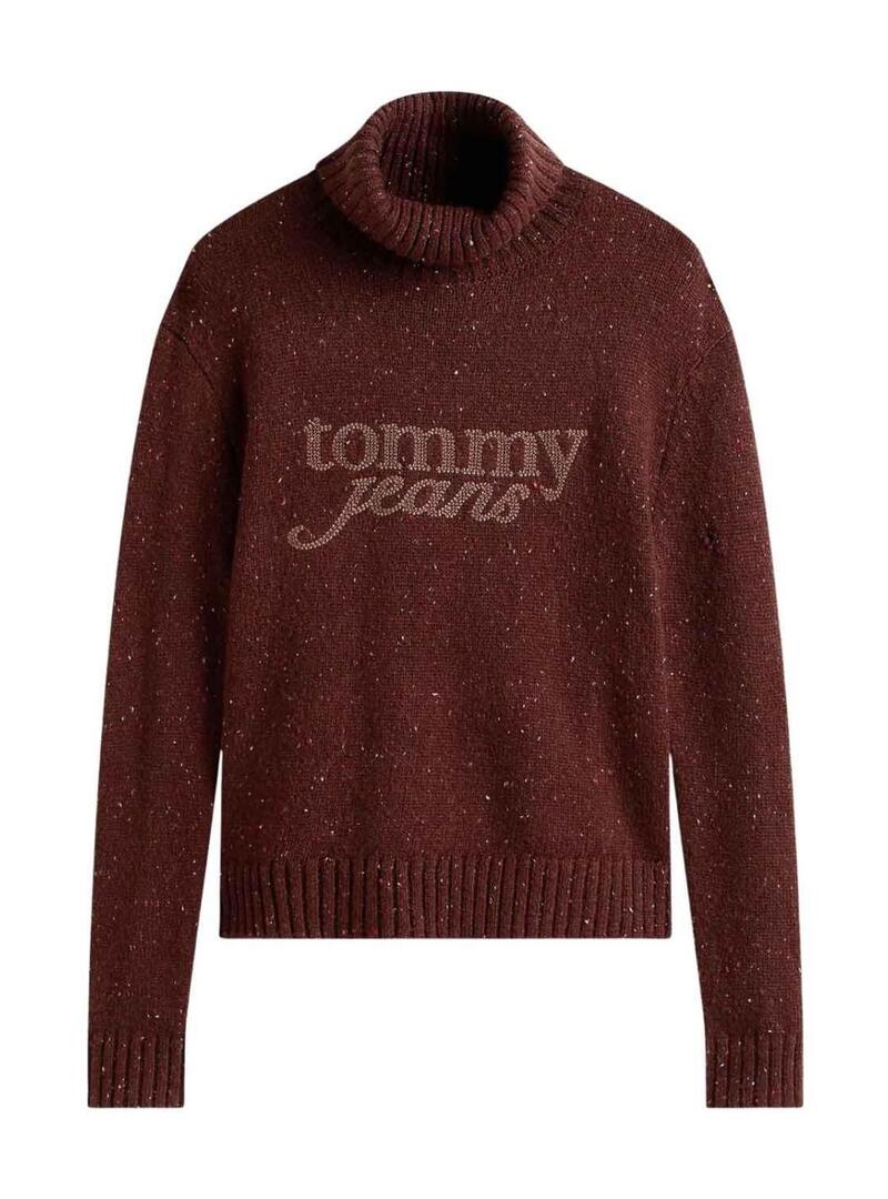 Maglia Tommy Jeans. Modello collo alto. Colore marrone. Collo alto a coste. Estremità a coste. Logo ricamato sul petto. Vestibilità leggermente ampia. Tessuto mélange.