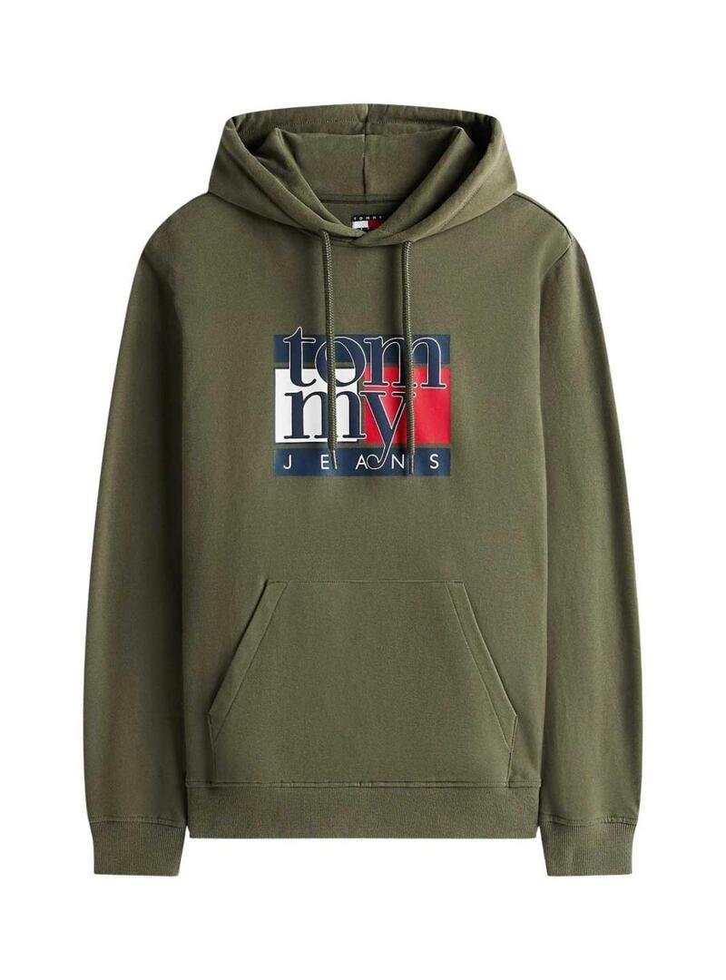 Felpa Tommy Jeans. Modello Flag. Colore verde. Cappuccio con coulisse regolabile. Polsini elastici. Tasca a marsupio. Logo stampato sul davanti. Vestibilità regolare.