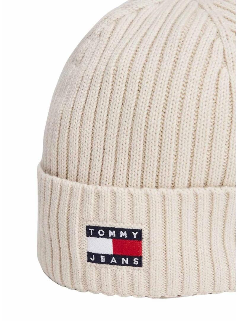 Cappello Tommy Jeans Heritage in maglia beige con logo per donna.