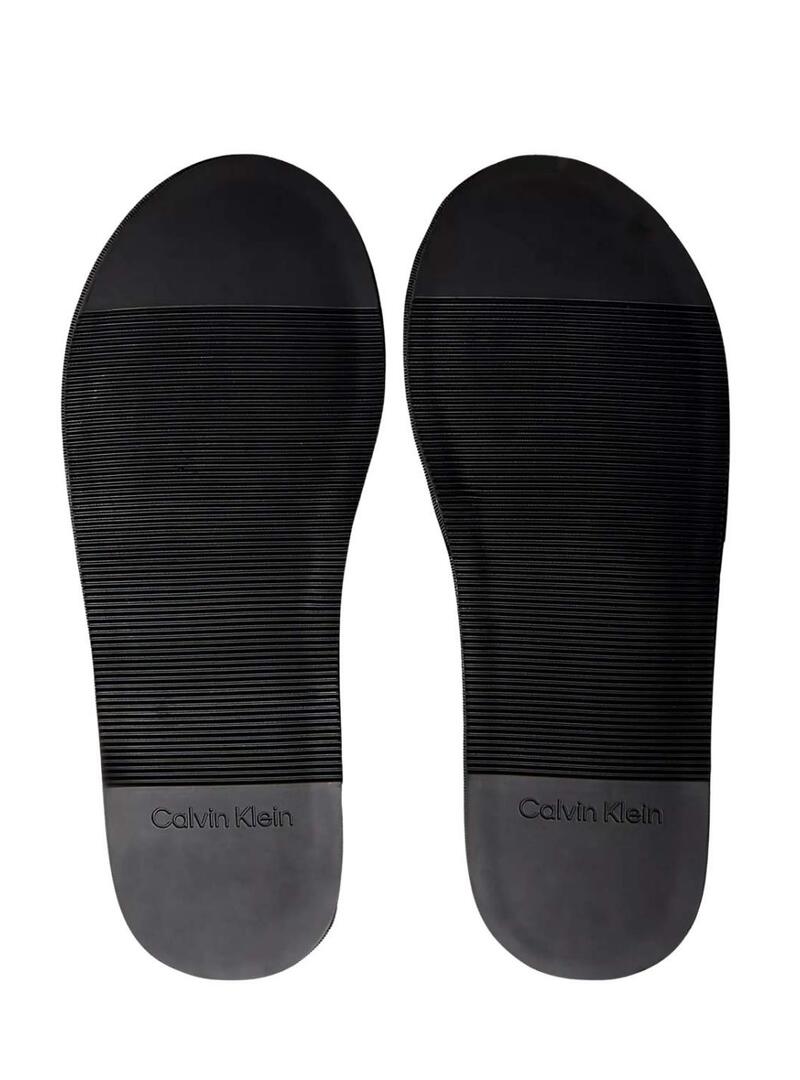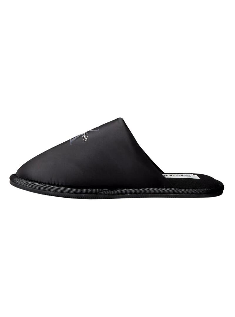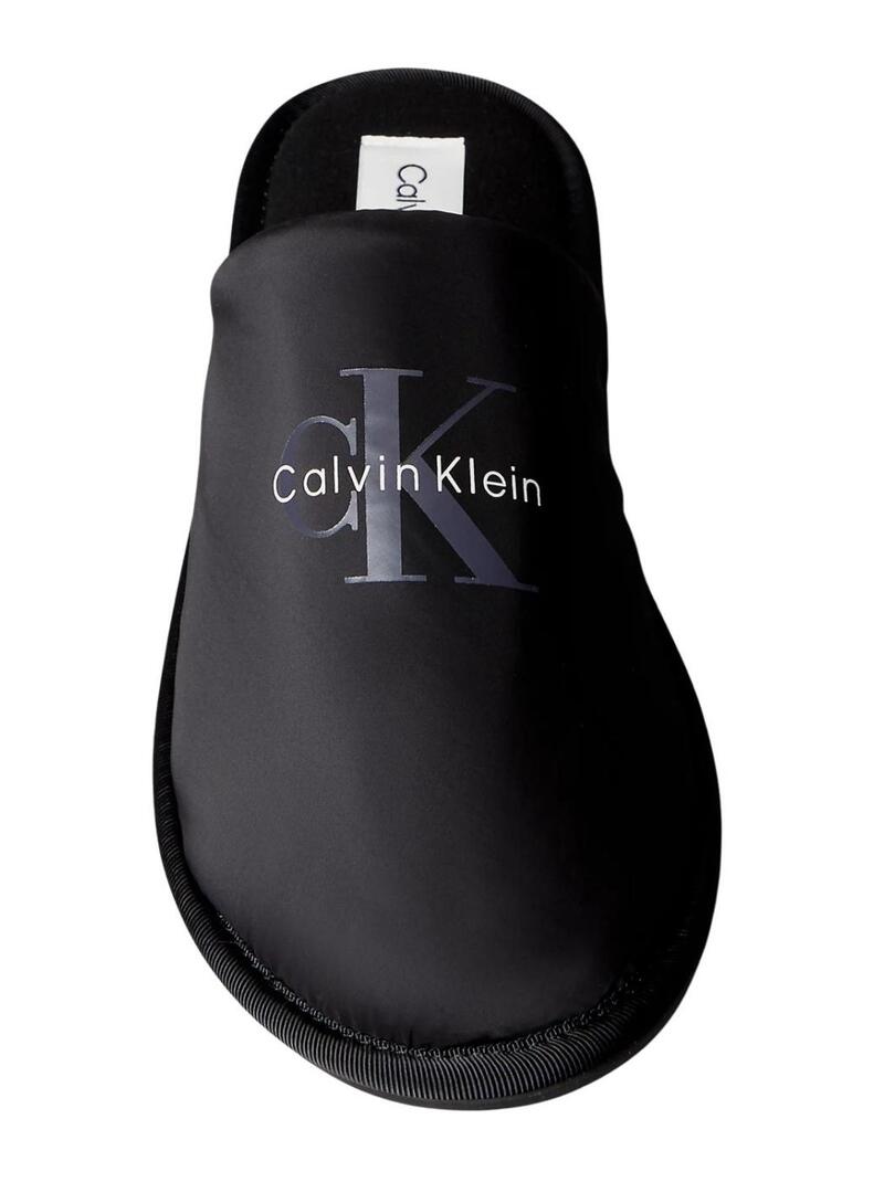 Pantofole da casa Calvin Klein. Colore nero. Tomaia satinata. Soletta imbottita. Fodera in poliestere felpato. Suola antiscivolo in TPR. Logo distintivo di Calvin Klein sull'istep.