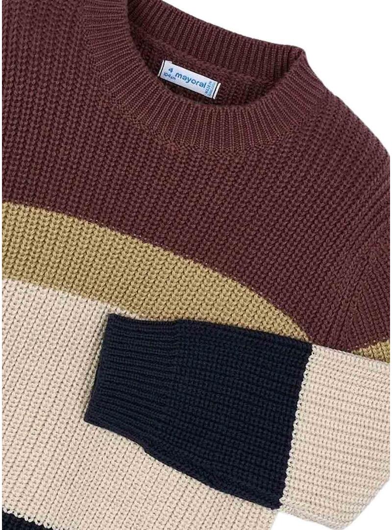 Maglia Mayoral. Manica lunga. Collo rotondo. Stampato a righe con colori diversi. Collo, polsini e fondo a costine. Combinazione di tessuti diversi.