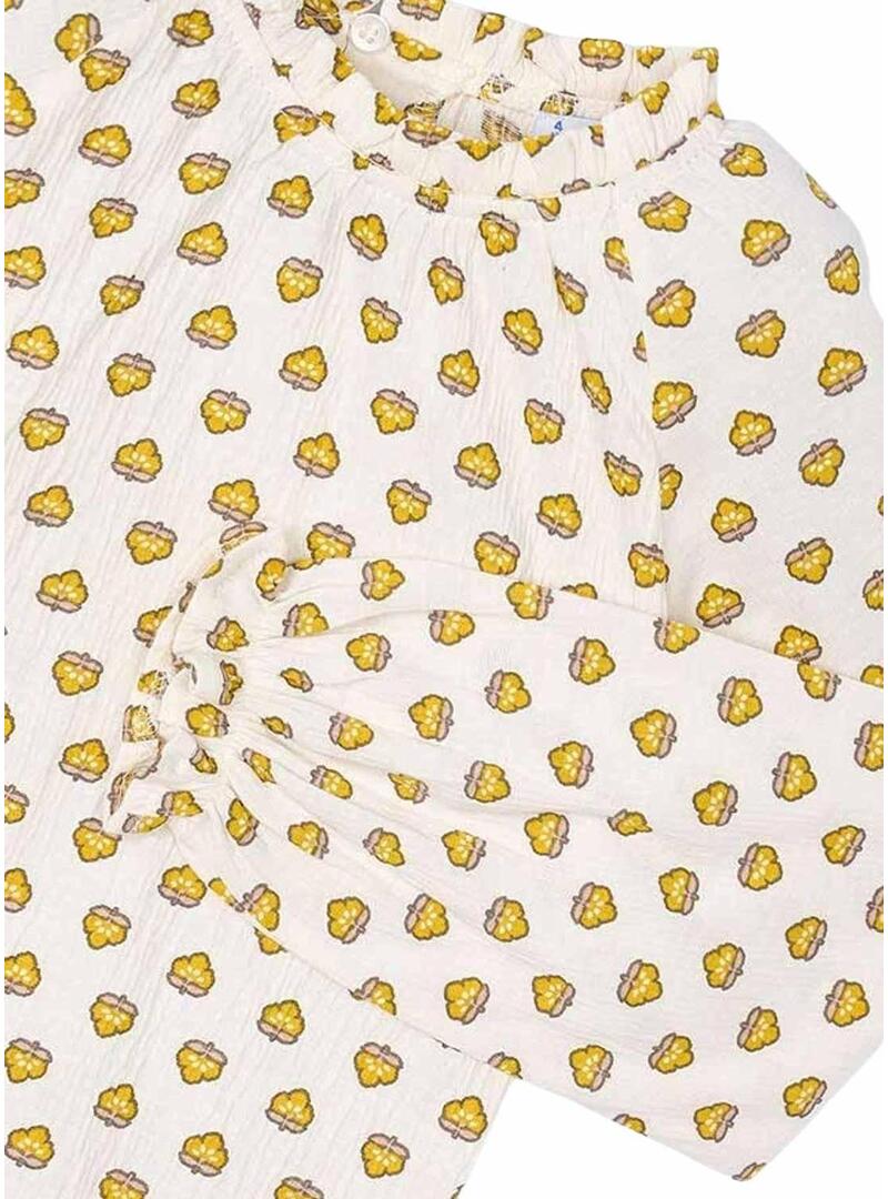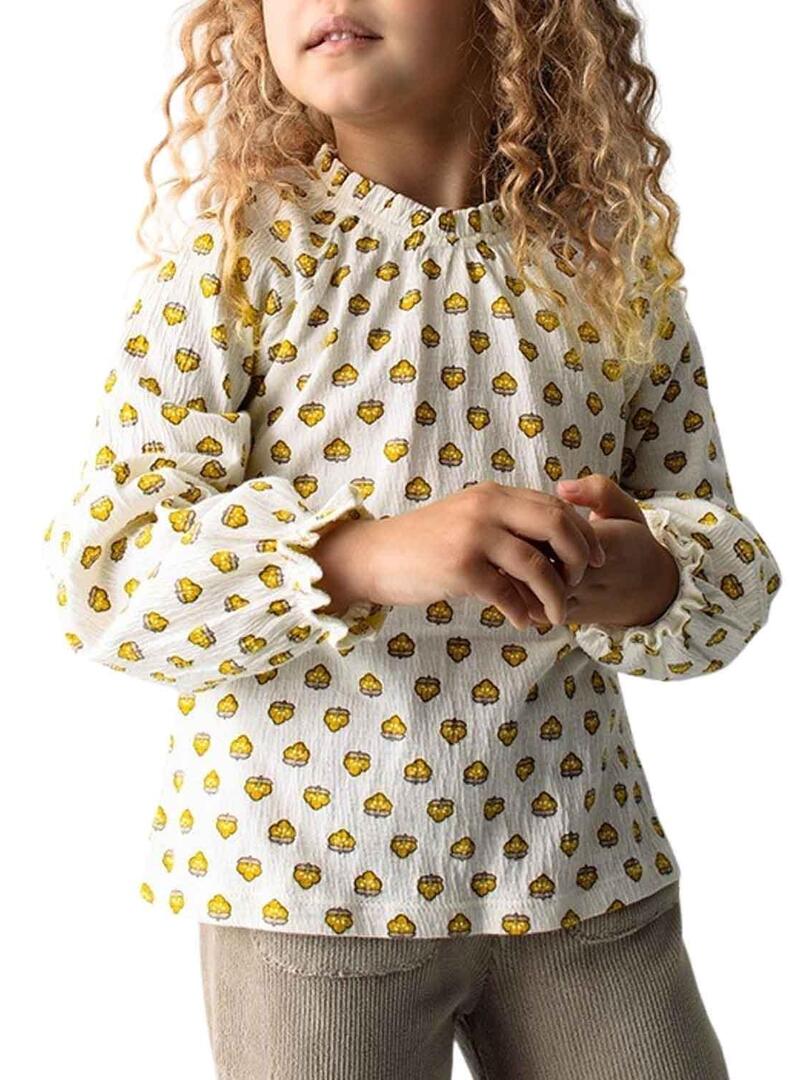 Maglietta Mayoral. Manica lunga. Dettaglio a volant sul polsino. Apertura con bottone sul collo. Tessuto in bambula.