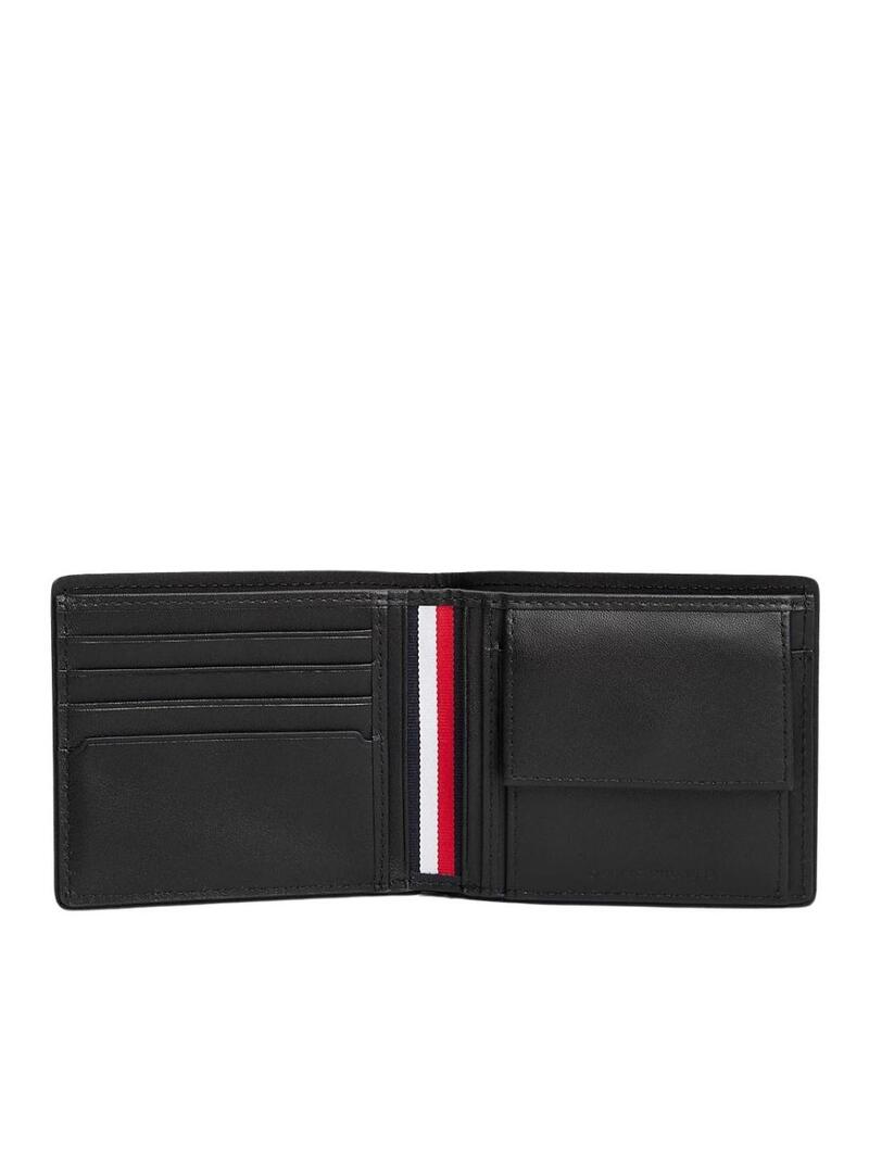 Portafoglio in pelle pieghevole Corporate di Tommy Hilfiger con porta monete nero per uomo.