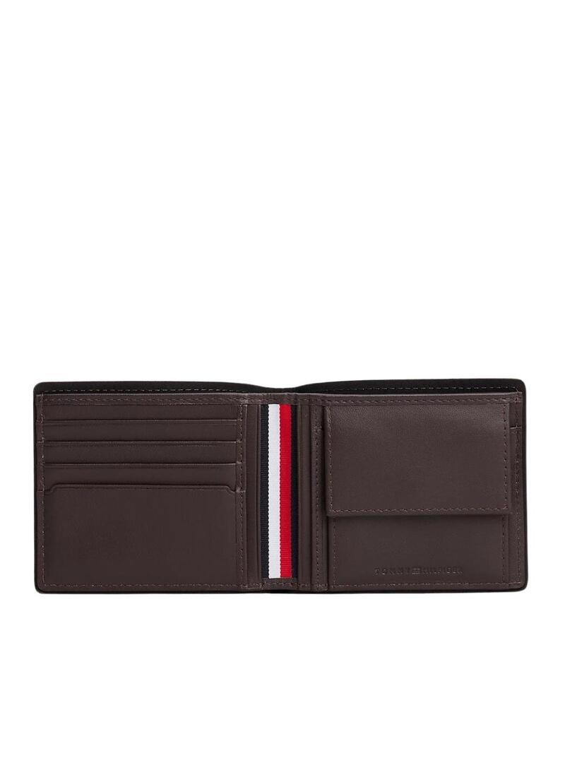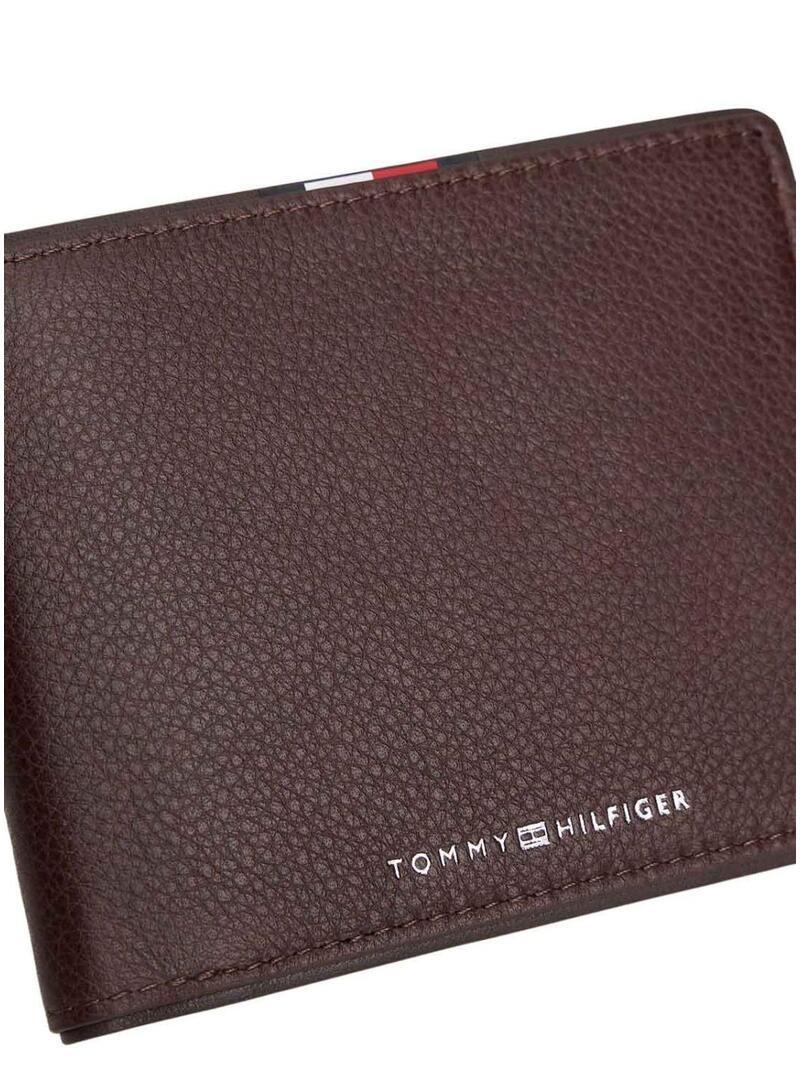 Portafoglio Tommy Hilfiger. Colore marrone. Formato pieghevole. In pelle. Tessuto granulato. Diverse fessure interne per le carte. Tasca interna per le monete. Scomparto interno per i biglietti. Nastro distintivo all'interno. Logo in metallo di Tommy Hilfiger sulla parte anteriore. Misure: 11,5 x 10 x 2 cm.
