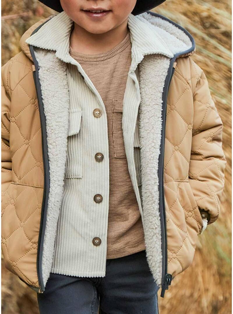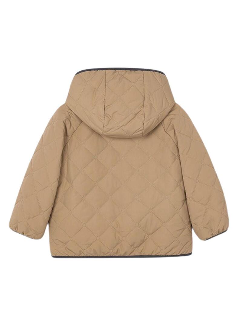 Giaccone Mayoral. Colore tostato. Reversibile. Collo con cappuccio. Chiusura centrale con zip. Tasche laterali. Tessuto trapuntato.