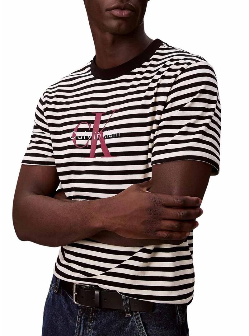 Maglietta Calvin Klein con stampa monologo a righe nere per uomo