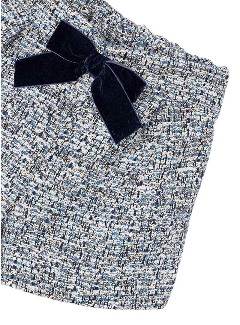 Pantaloni corti Mayoral. Vita con elastico regolabile con bottoni all'interno. Dettaglio di fiocco. Modello a pieghe.