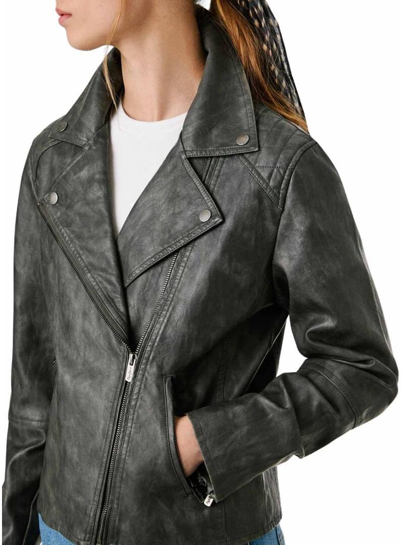 Giacca da motociclista Pepe Jeans Stacy nera in ecopelle per donna.