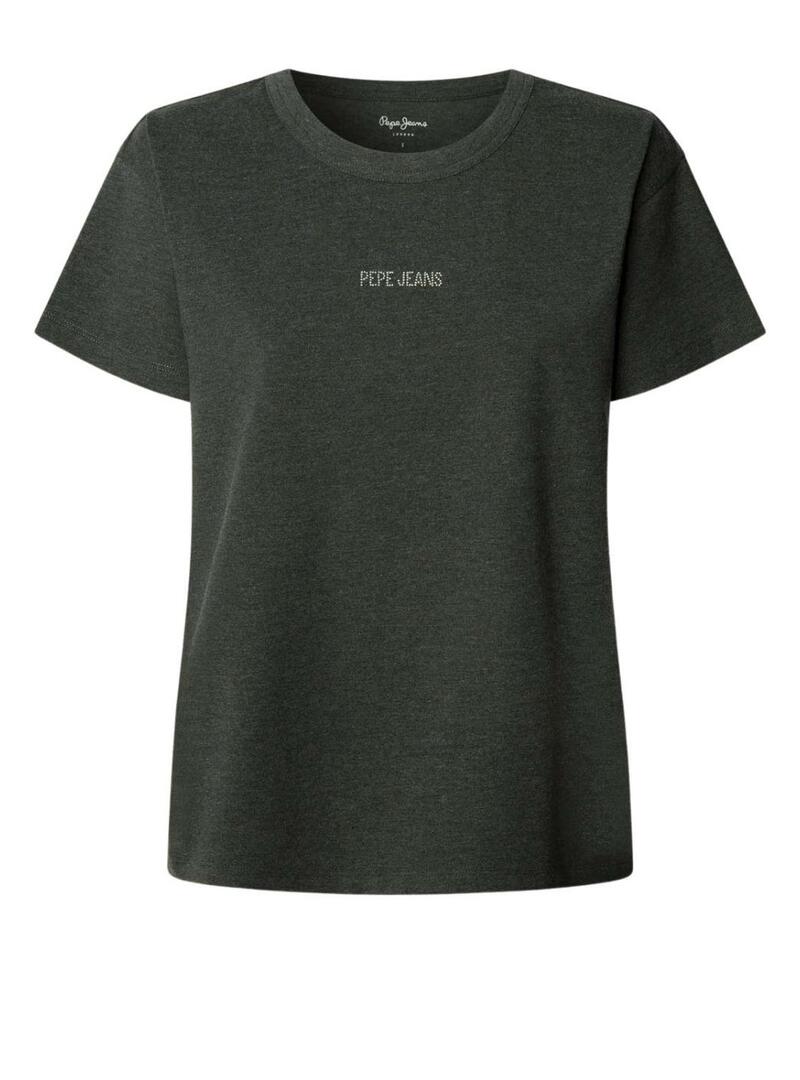 Maglietta Pepe Jeans Bemma logo strass grigia per donna