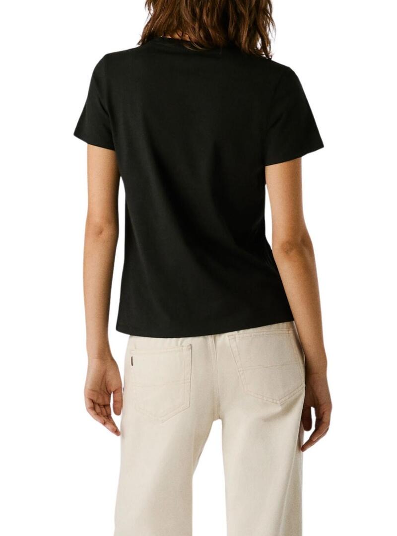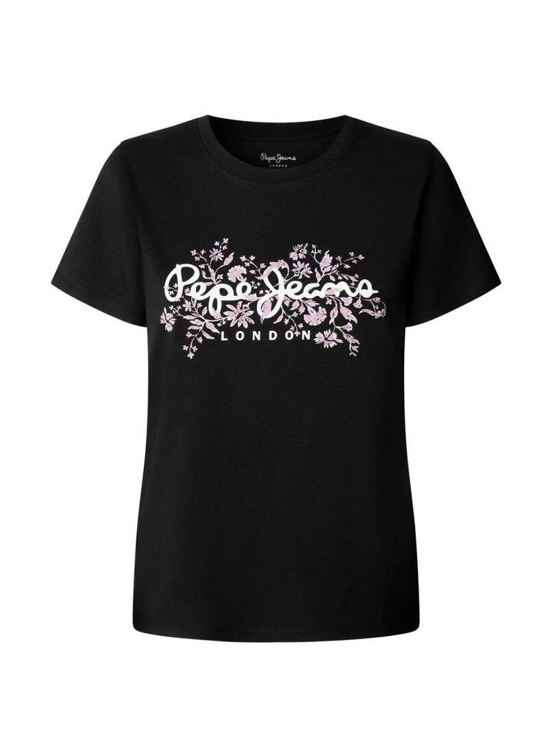 Maglietta Pepe Jeans. Colore nero. Collo rotondo a coste. Manica corta. Logo con dettagli floreali sul petto. Finitura a doppia cucitura sulle maniche e sul fondo. Il modello indossa la taglia S.