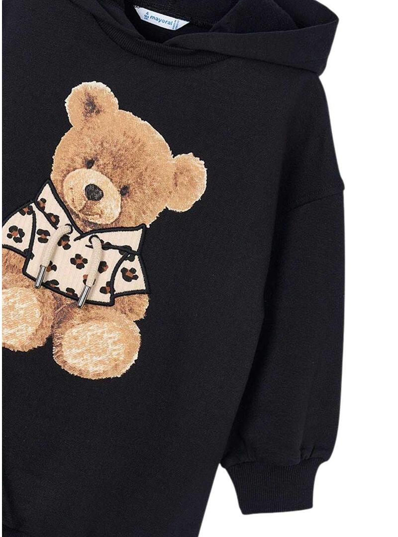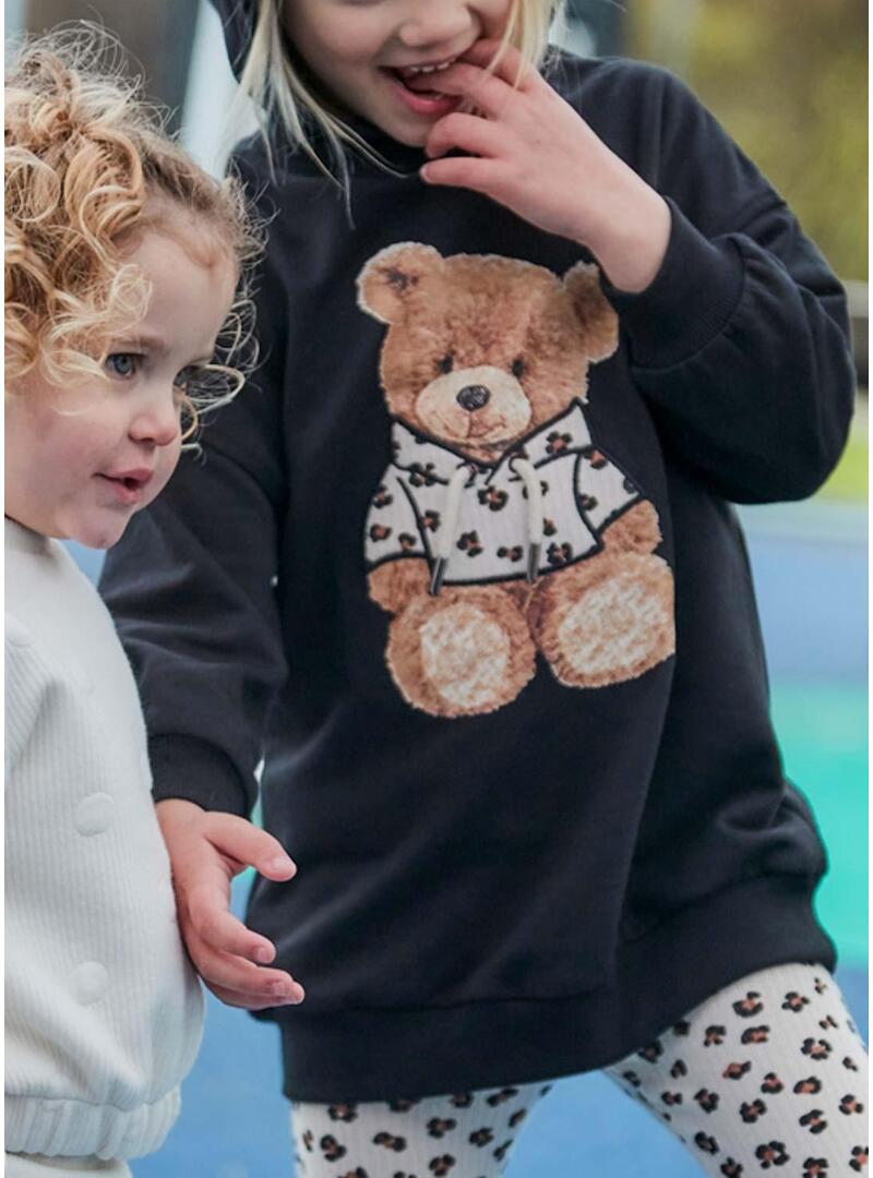 Abito Mayoral. Maniche lunghe. Collo con cappuccio. Tessuto in pile spazzolato. Dettaglio orsacchiotto sul petto.