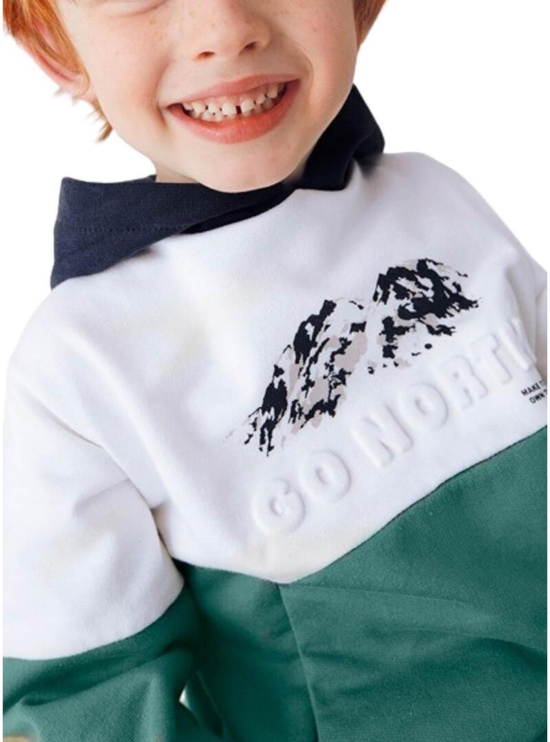 Tuta Mayoral. Con due pantaloni. Vita elasticizzata con coulisse. Due tasche laterali e una posteriore. Ginocchiere rinforzate all'interno. Fondo elastico. Felpa a maniche lunghe. Collo con cappuccio. Tasca frontale.