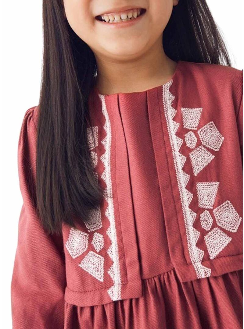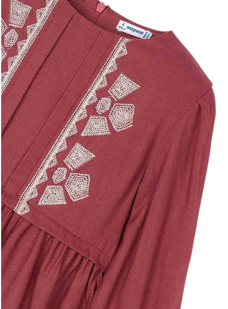 Abito Mayoral con dettagli ricamati bordeaux per bambina.