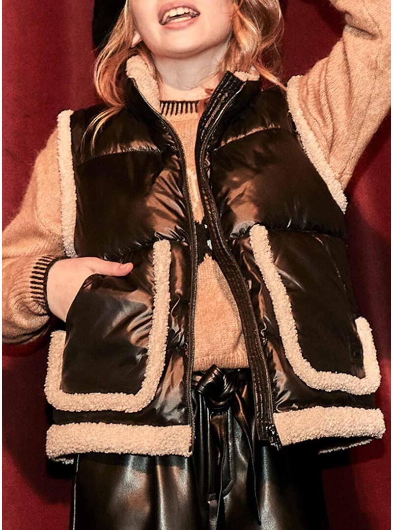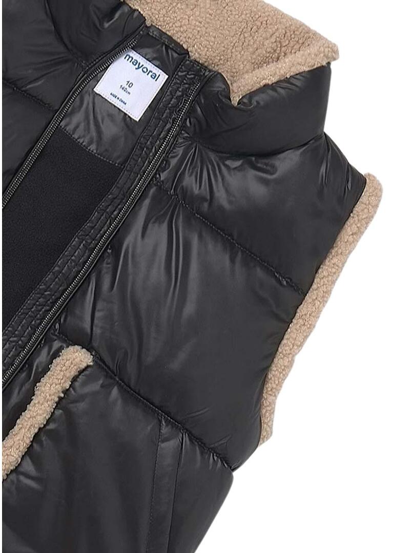 Gilet Mayoral. Colore nero. Colletto alto. Chiusura centrale con zip. Tessuto a maglia trapuntato. Dettagli in montone a contrasto. Fodera interna abbinata a montone. Tasche sulla parte anteriore.
