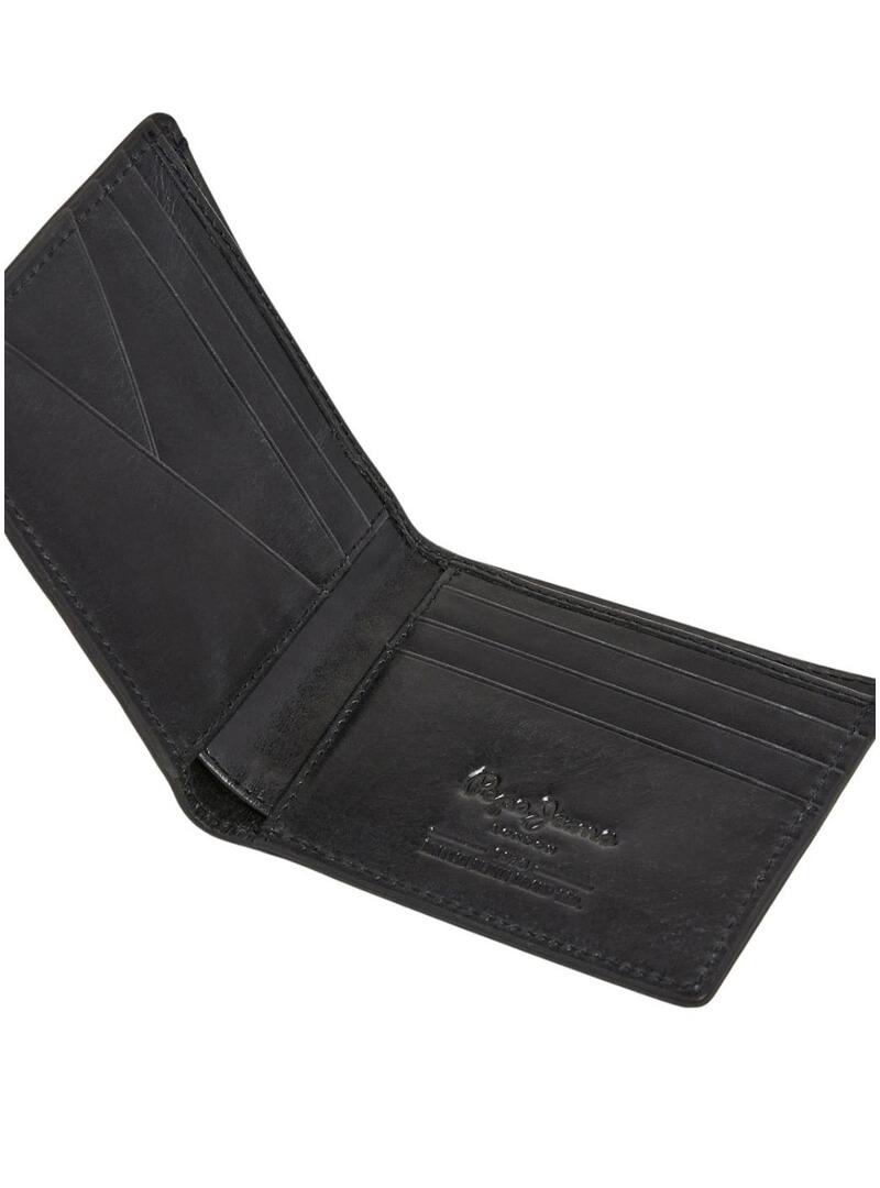 Portafoglio Pepe Jeans. Colore nero. In pelle. Con etichetta di sicurezza RFID. Scomparti per carte e denaro. Fodera in tessuto a contrasto. Cuciture decorative. Logo inciso in rilievo sulla parte anteriore e all'interno.