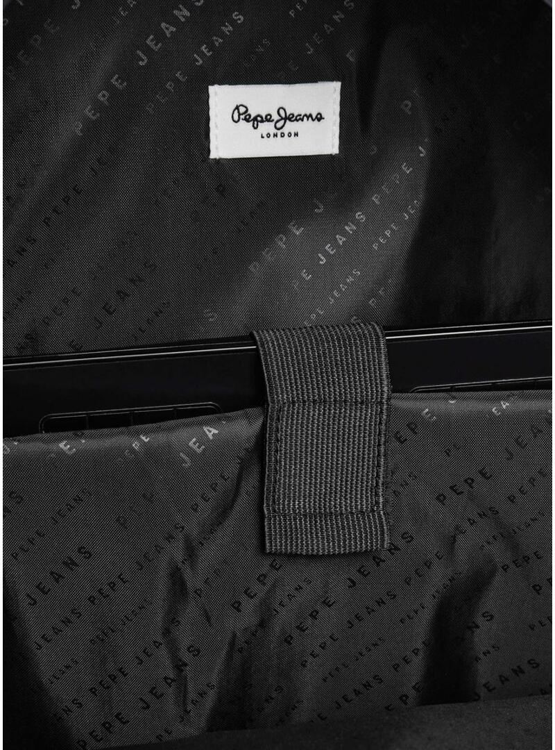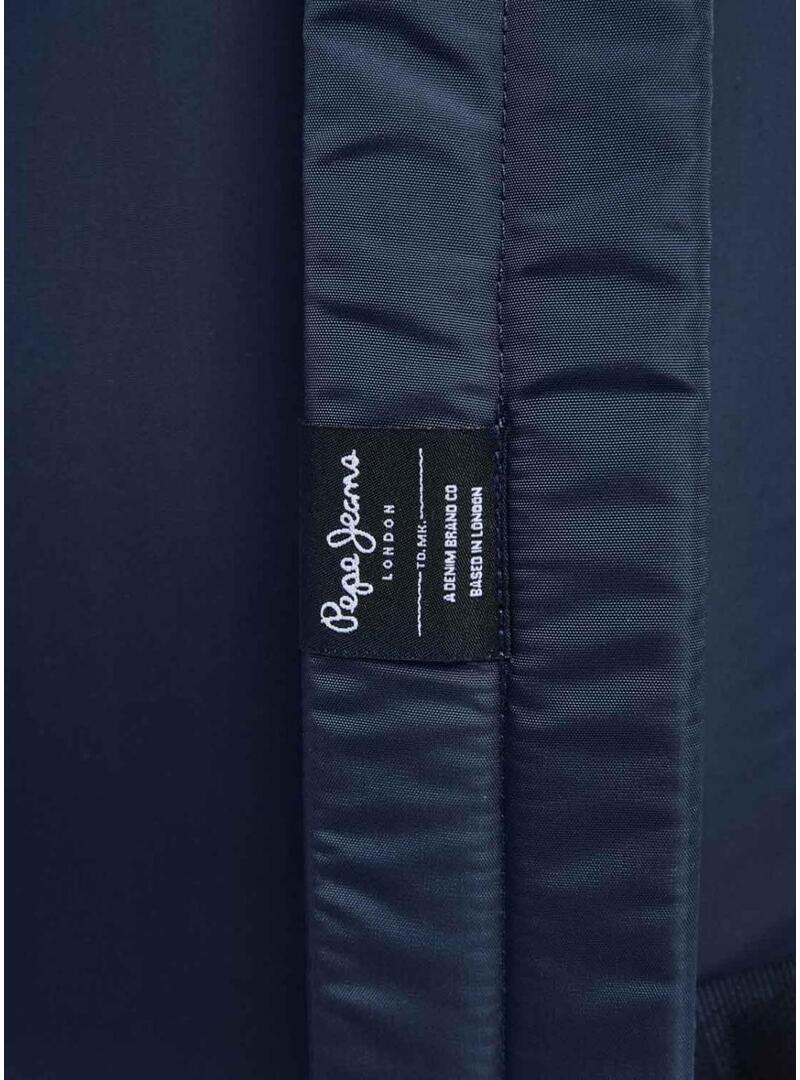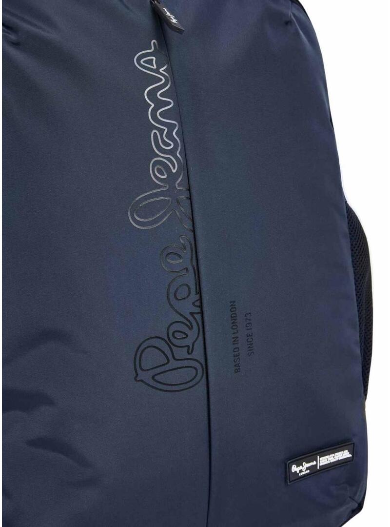 Zaino Pepe Jeans. Colore blu navy. Chiusura con cerniera. Spalline imbottite e regolabili. Manico superiore con logo. Logo stampato sulla parte anteriore. Scomparto centrale e scomparto interno per laptop. Maniglie in gomma con logo. Tasche laterali in rete.