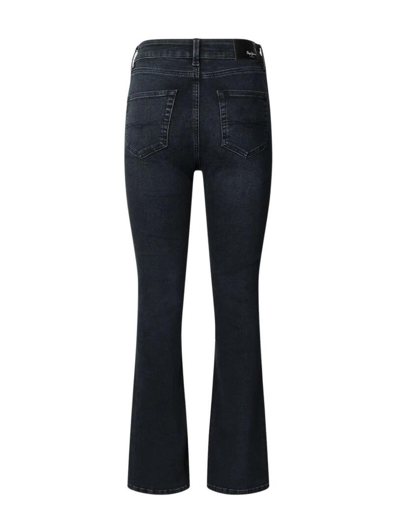 Jeans Pepe Jeans. Modello Dion. Taglio a zampa. Vita alta. Gamba a zampa. 5 tasche. Chiusura con zip. Dettaglio di cucitura sulle tasche posteriori. Tessuto denim elastico flessibile. Lavaggio blu intenso. Rivetti con logo inciso.