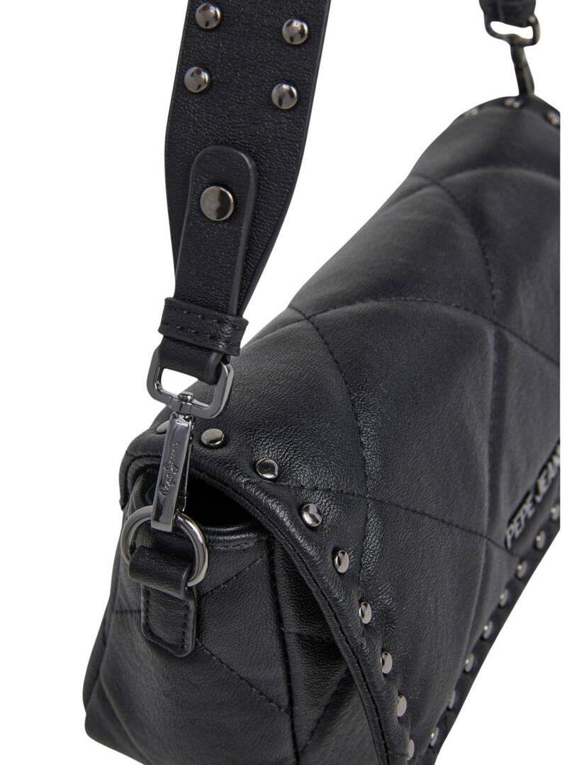 Borsa Pepe Jeans. Colore nero. Tessuto trapuntato. Patta con borchie e chiusura magnetica. Manico corto staccabile con borchie. Tracolla con catena regolabile. Tasche interne. Logo metallico di Pepe Jeans sulla patta.