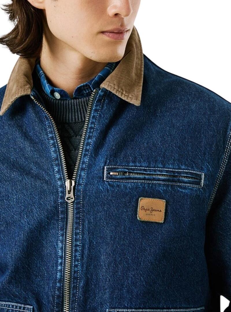 Giacca Pepe Jeans. Tessuto denim rigido. Colletto in velluto a contrasto. Due tasche applicate. Una tasca sul petto con zip. Una tasca interna. Chiusura con zip. Fondo regolabile con bottoni. Patch in pelle con logo sul petto.