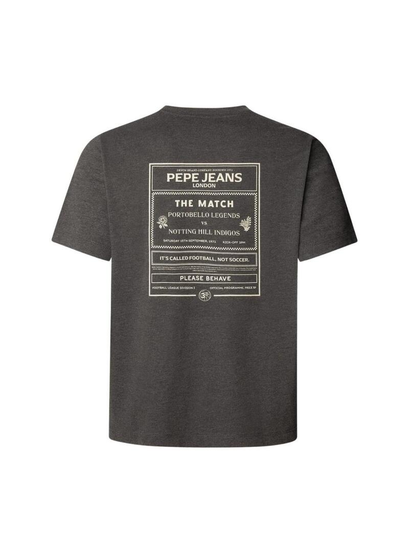 Maglietta Pepe Jeans. Colore grigio. Manica corta. Colletto rotondo. Taglio rilassato. Logo sul petto. Stampa grafica sulla schiena. Il modello indossa la taglia M.