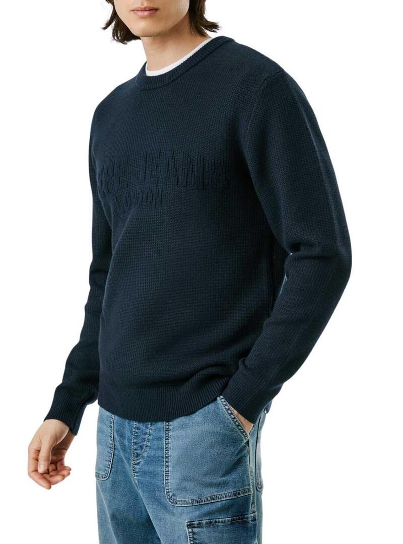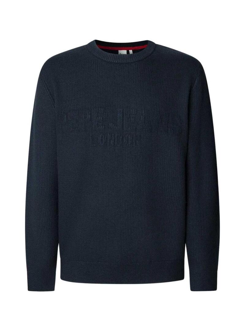 Felpa Pepe Jeans. Colore blu marino. Manica lunga. Collo rotondo. Taglio regolare. Logo jacquard ricamato tono su tono sul petto. Finiture a costine. Etichetta del marchio cucita sul lato. Il modello indossa la taglia M.