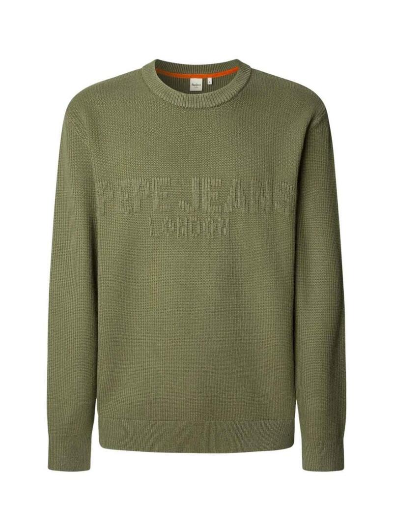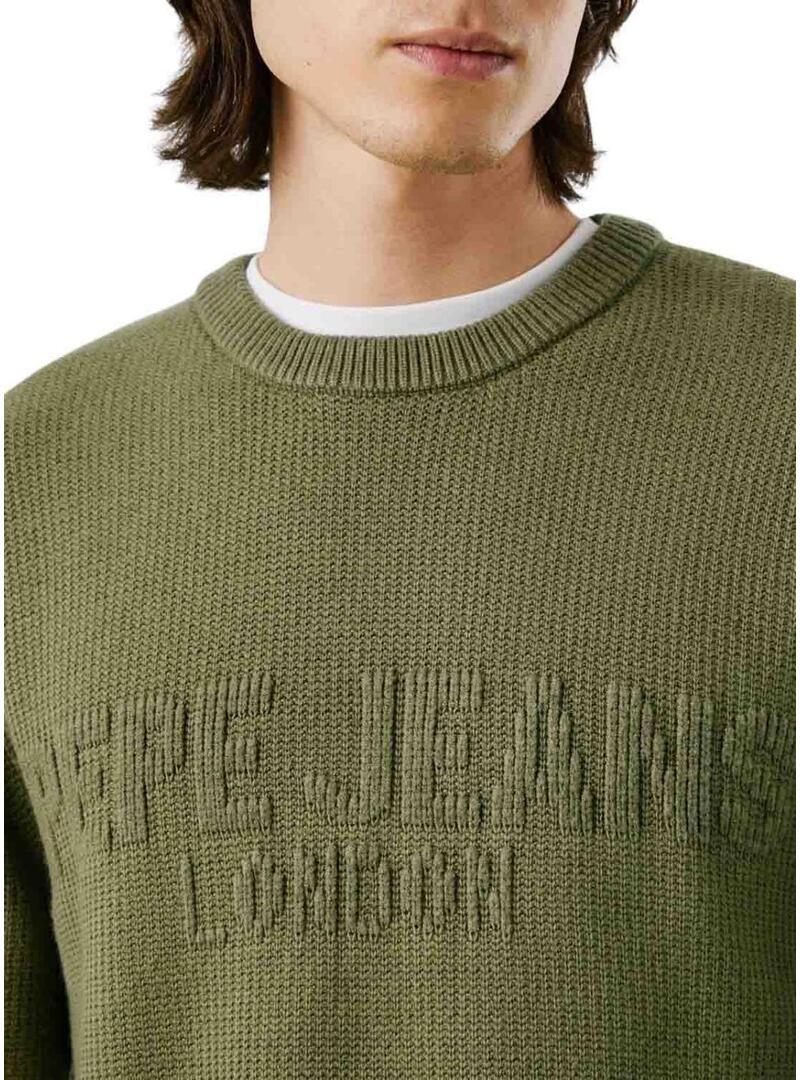 Maglione Pepe Jeans. Colore verde. Manica lunga. Collo rotondo. Taglio regolare. Logo jacquard ricamato tono su tono sul petto. Finiture a coste. Etichetta del marchio cucita sul lato. Il modello indossa la taglia M.