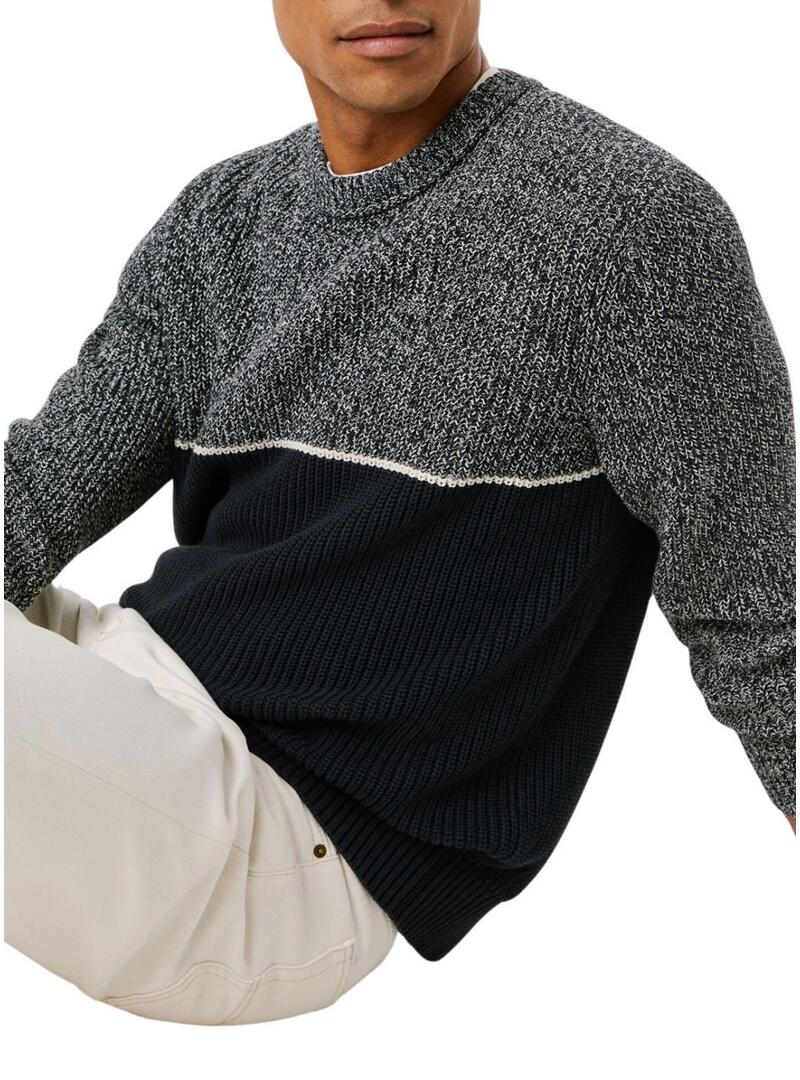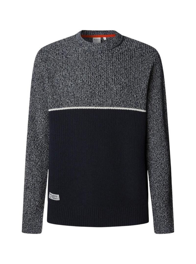 Maglia Pepe Jeans. Struttura a blocchi di colore. Maniche lunghe. Collo rotondo. Taglio regolare. Logo jacquard ricamato tono su tono sul petto. Finiture a costine. Etichetta del marchio cucita in basso. Il modello indossa la taglia M.