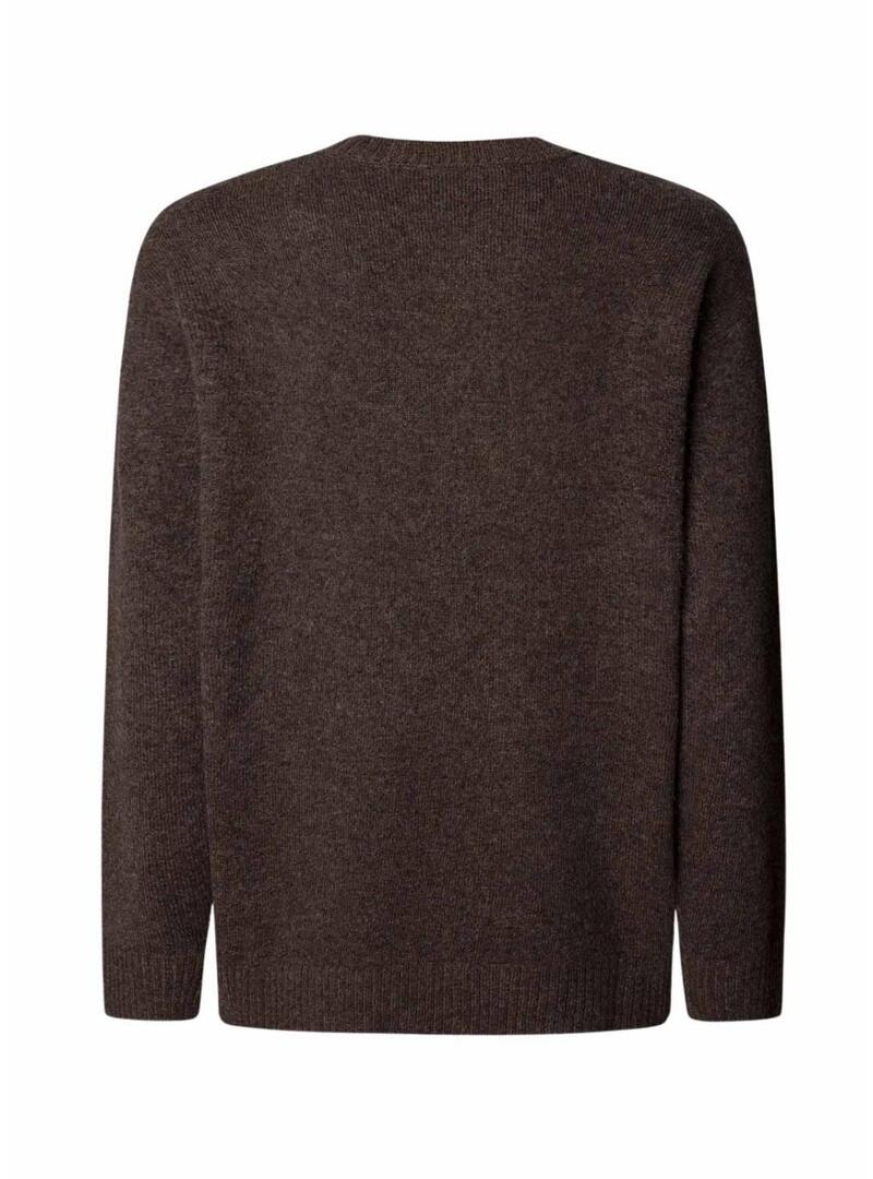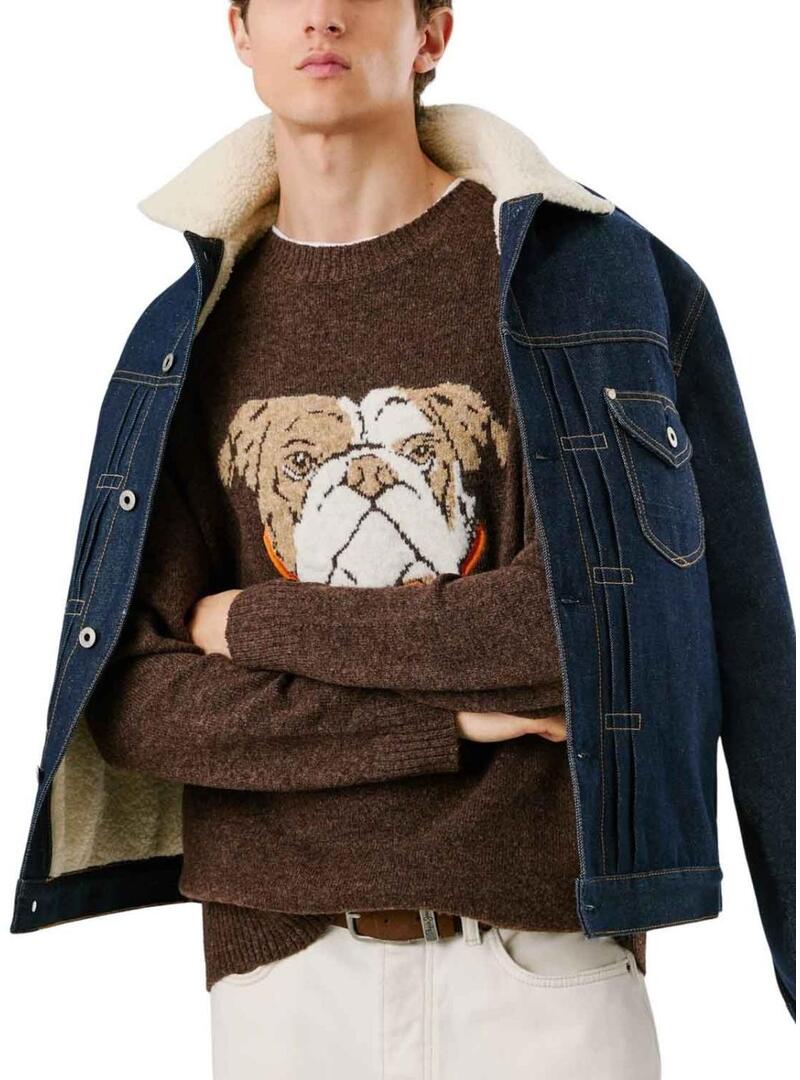 Maglione Pepe Jeans. Colore marrone. Manica lunga. Collo tondo. Taglio regolare. Stampa di cane in jacquard sulla parte anteriore. Logo di PJL ricamato sulla manica destra. Etichetta con logo cucita sulla cucitura laterale. Il modello indossa la taglia M.