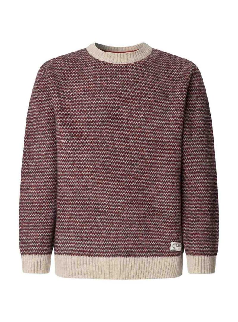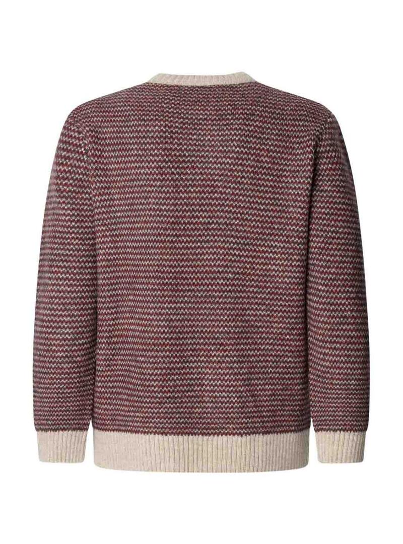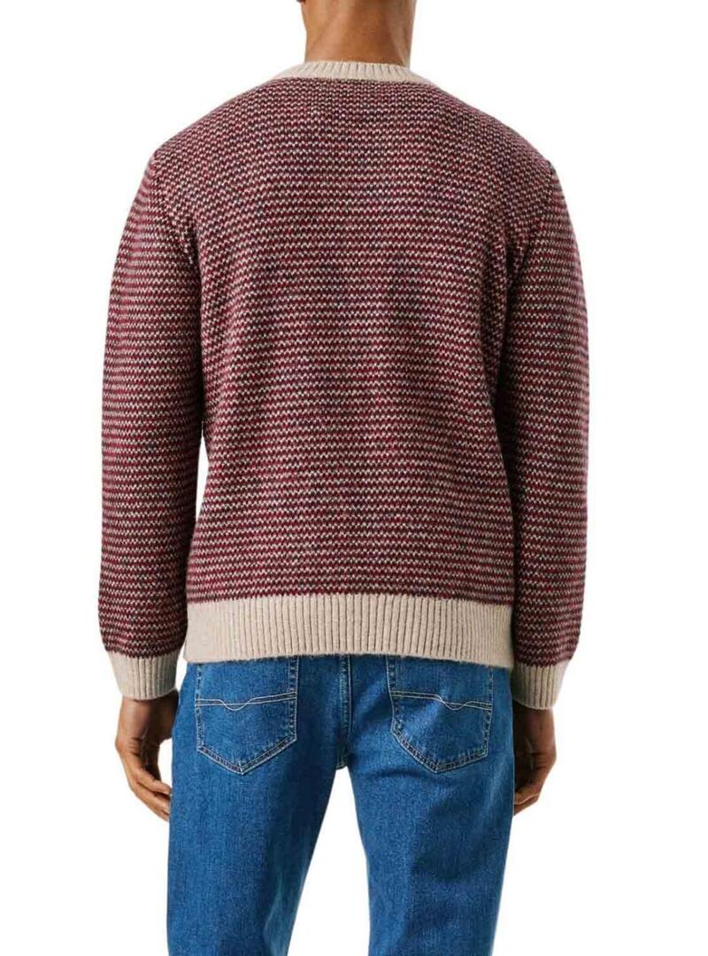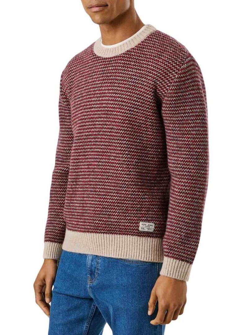 Maglione Pepe Jeans. Maglia a maglia con misto lana e alpaca. Vestibilità regolare. Collo rotondo. Manica lunga. Struttura jacquard a righe orizzontali. Orli a costine. Etichetta con logo di Pepe Jeans in basso. Il modello indossa la taglia M.