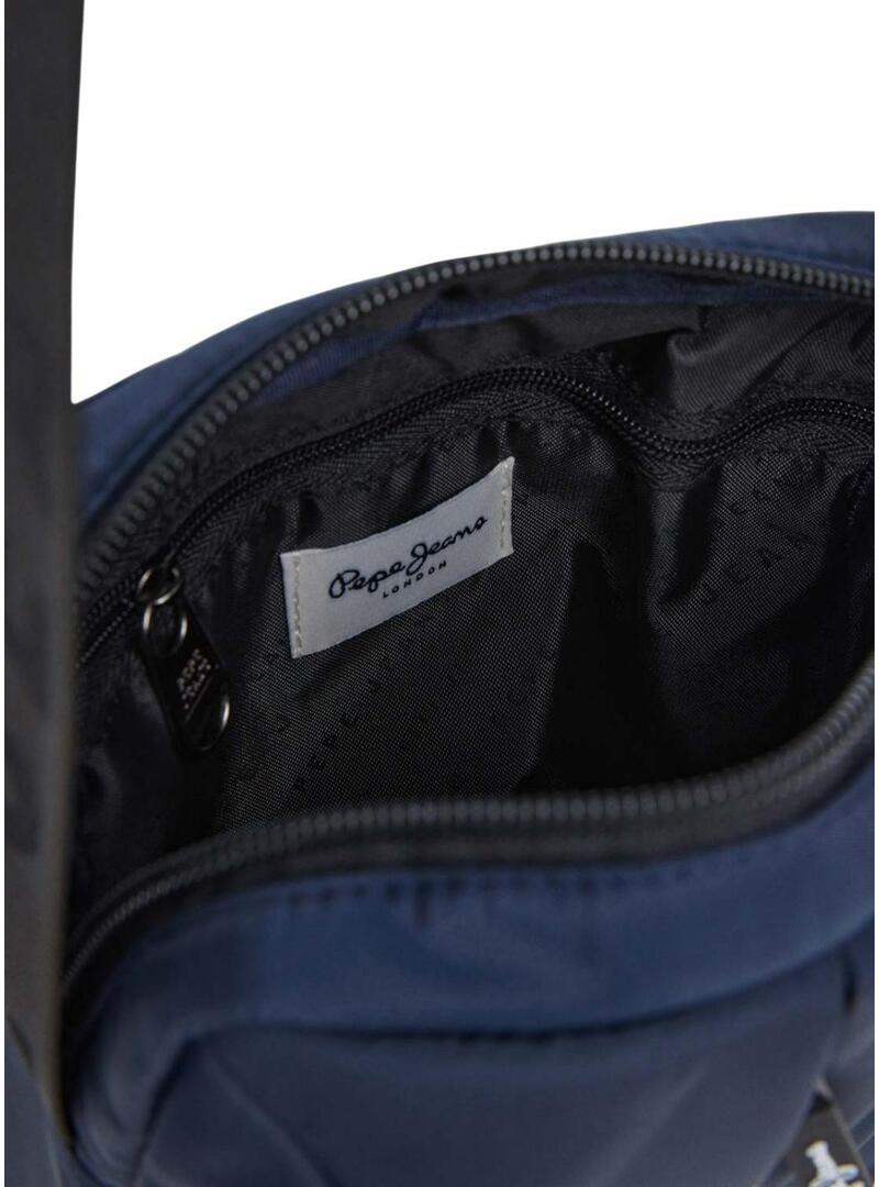 Borsa Pepe Jeans. Realizzata in nylon. Colore blu scuro. Tracolla regolabile in tela con logo. Vari scomparti con cerniera e patta. Tasca interna. Manici personalizzati. Logo Pepe Jeans stampato in grande sulla parte anteriore. Misure: 5,5 cm x 16,5 cm x 21,5 cm.