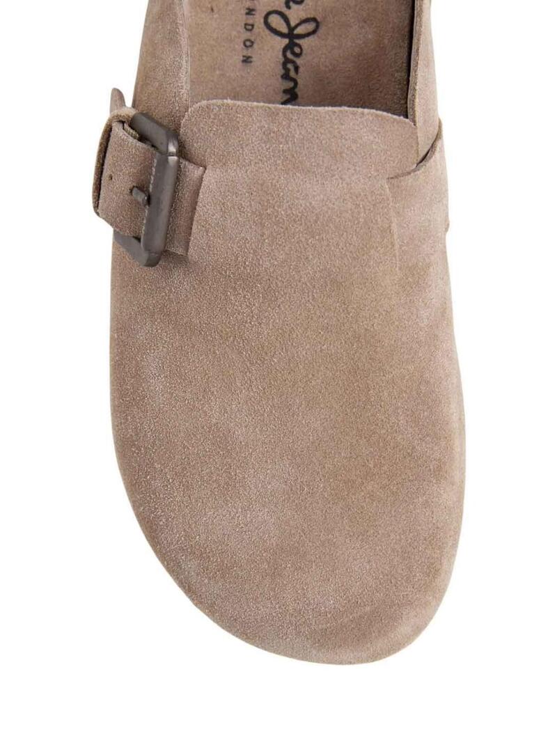 Zoccoli Pepe Jeans. Colore beige. Parte superiore in pelle scamosciata. Cinturino con fibbia metallica. Soletta anatomica. Logo classico sulla soletta. Suola dentellata in TR.