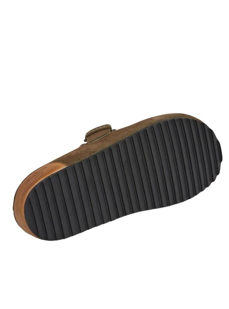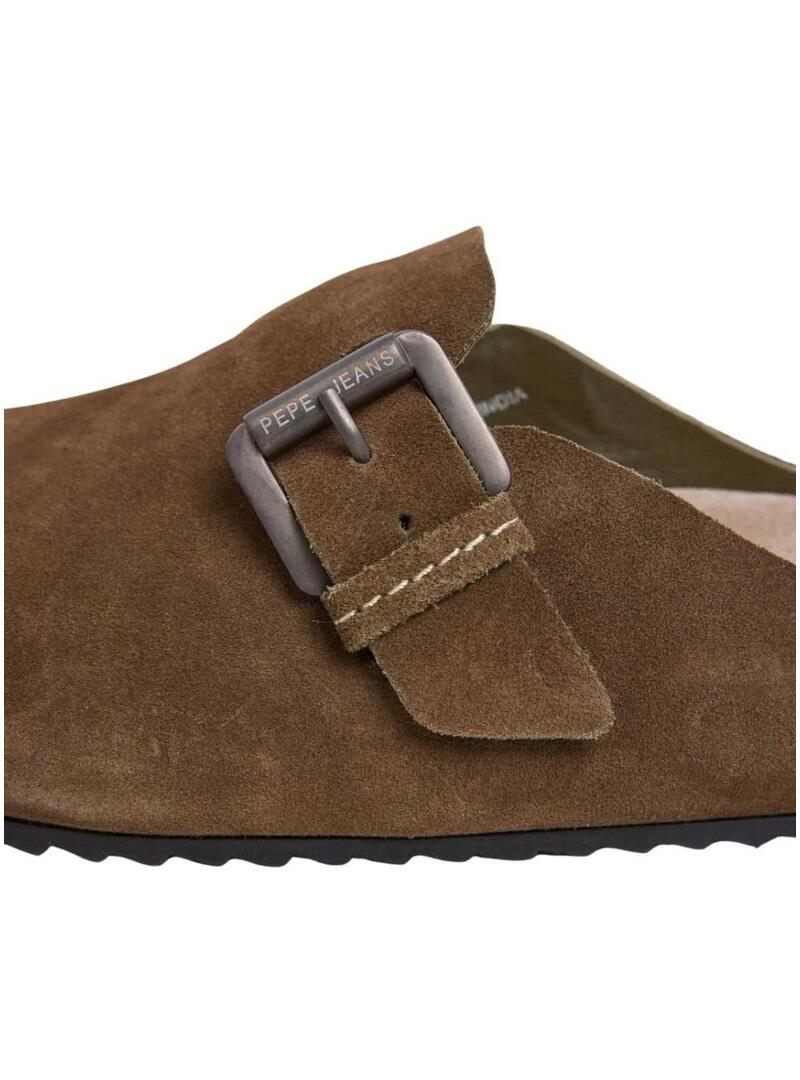 Zoccoli Pepe Jeans. Colore verde. Parte superiore in pelle scamosciata. Cinturino con fibbia metallica sull'istep. Soletta anatomica rivestita in camoscio. Logo classico sulla soletta. Suola dentellata in TR. Dettaglio in pelle con logo inciso sul tallone.