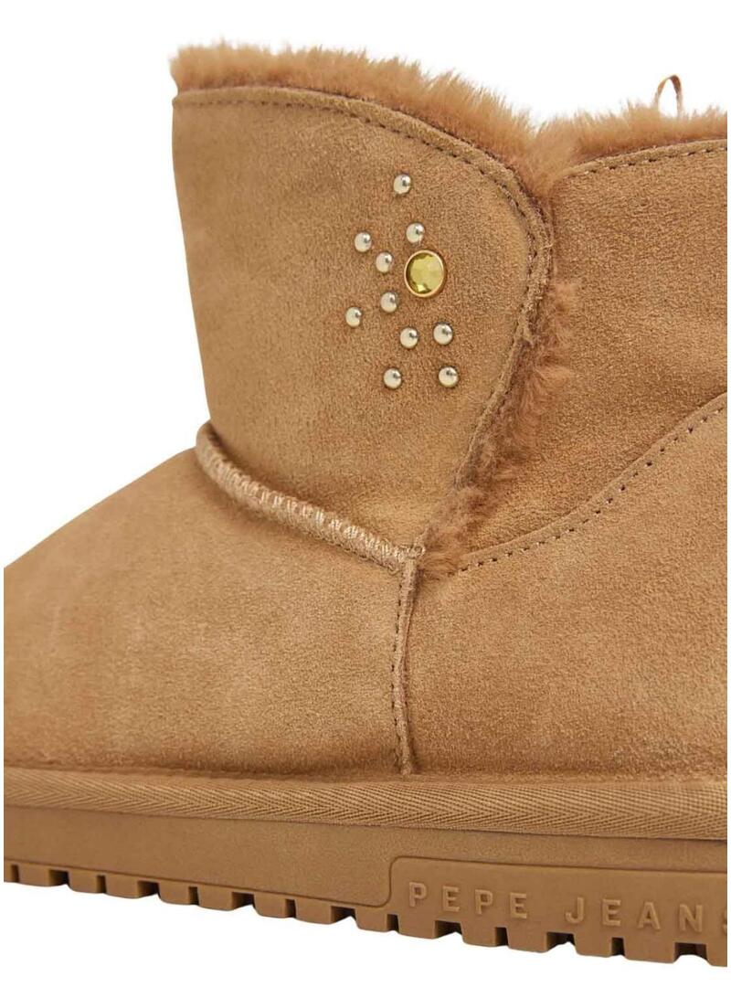 Stivali Pepe Jeans. Colore cammello. Tessuto scamosciato. Gambale basso con pattina sull'istep. Fodera interna in pelliccia. Borchie decorative sui lati. Patch in gomma con logo in rilievo sul tallone. Suola in gomma termoplastica antiscivolo.