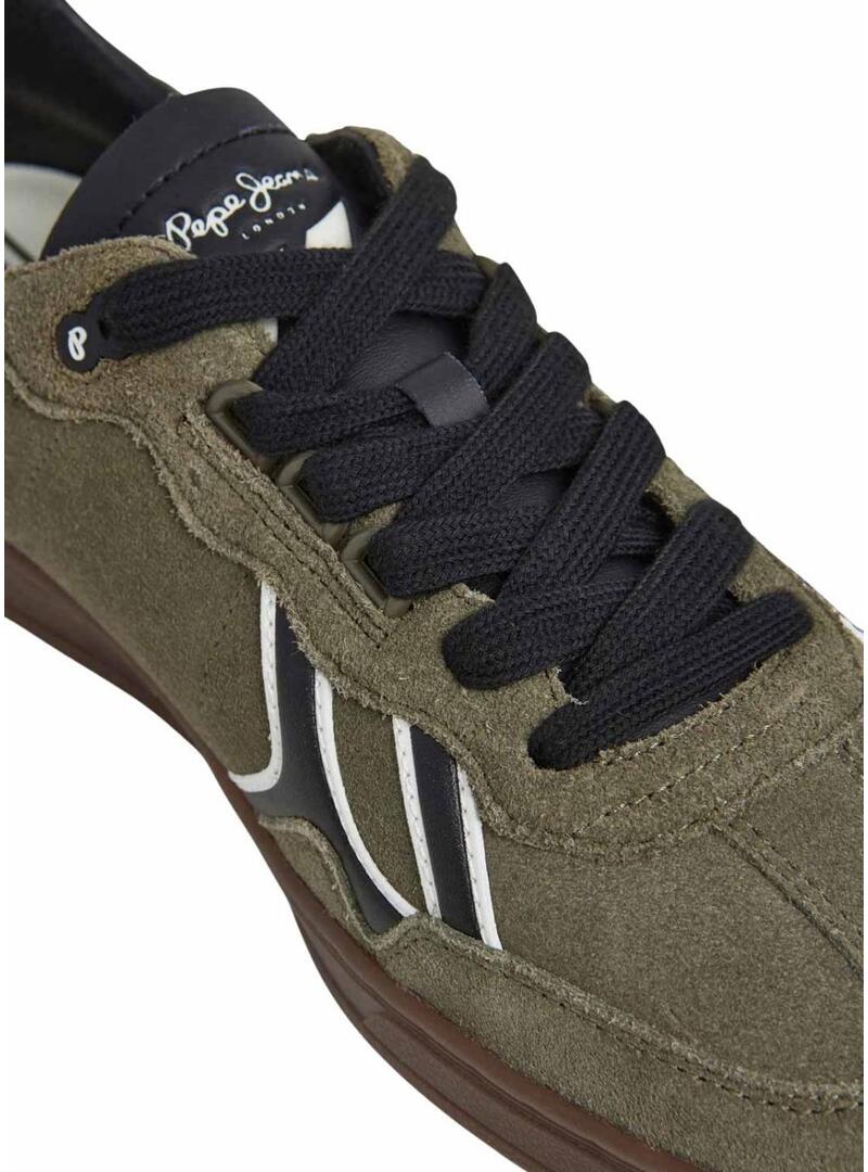 Scarpe Pepe Jeans. Colore verde. Parte superiore in camoscio. Chiusura con lacci. Logo di Pepe Jeans termosaldato sui lati. Soletta removibile e termoformata. Linee sui lati. Contrasto sul tallone con logo in rilievo 1973. Suola cupsole in gomma color caramello.