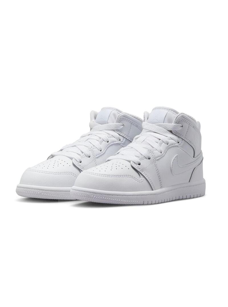 Scarpe da ginnastica Jordan. Modello Jordan 1 Mid (PS) 136. Colore bianco. Altezza media. Chiusura con lacci. Logo laterale. Suola in gomma. Design confortevole.