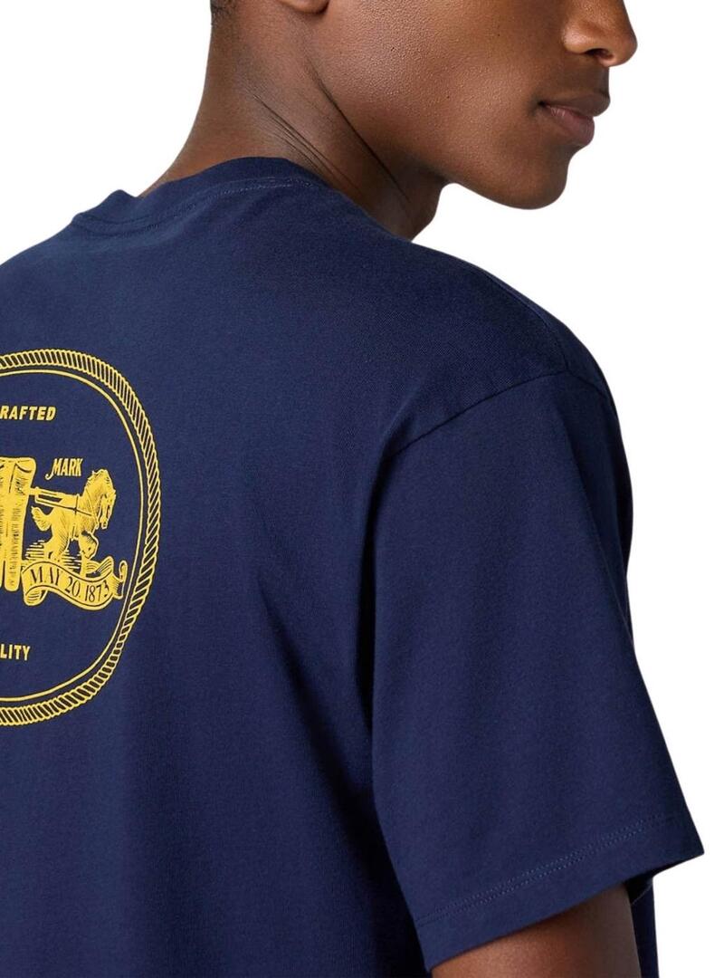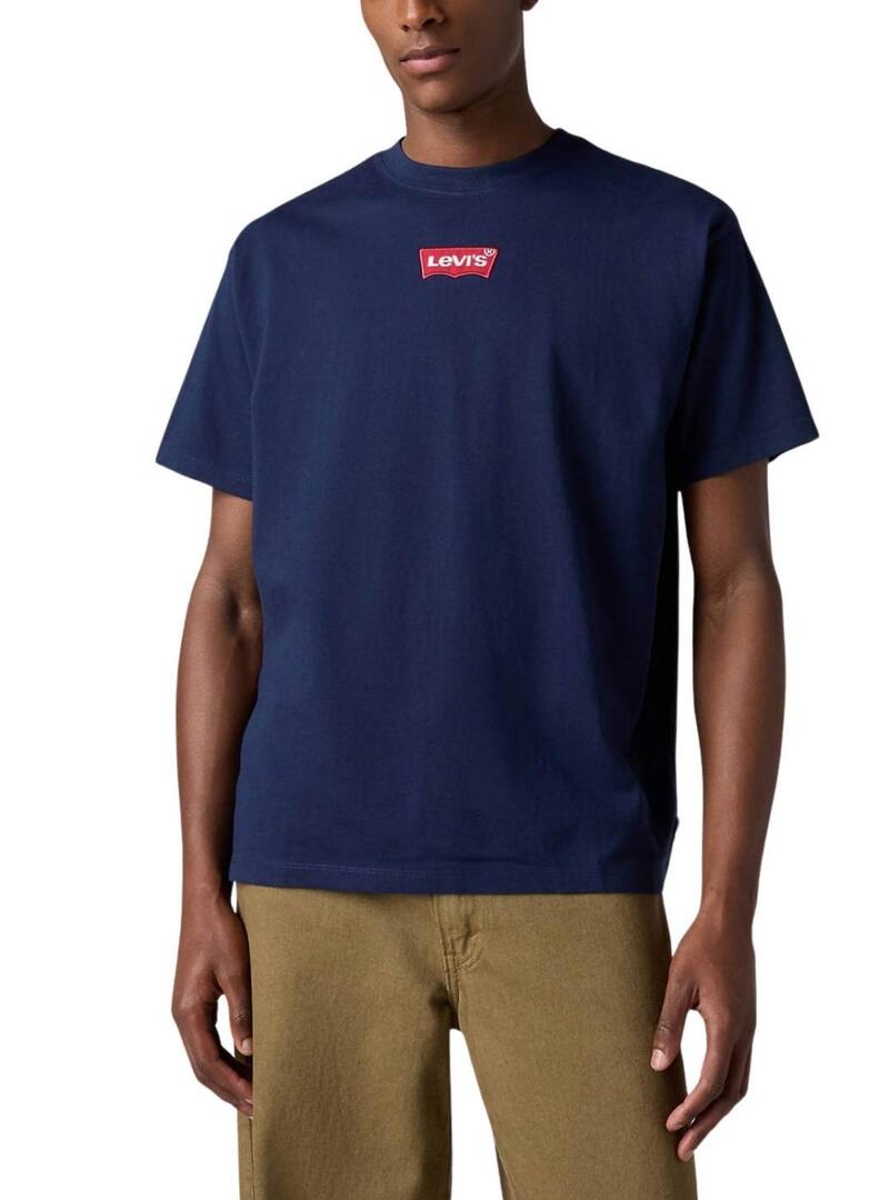 Maglietta Levis. Colore navy. Collo rotondo. Manica corta. Logo sul petto. Vestibilità rilassata. Tessuto morbido. Logo sul petto. Stampa grafica sulla schiena. Il modello indossa la taglia M.