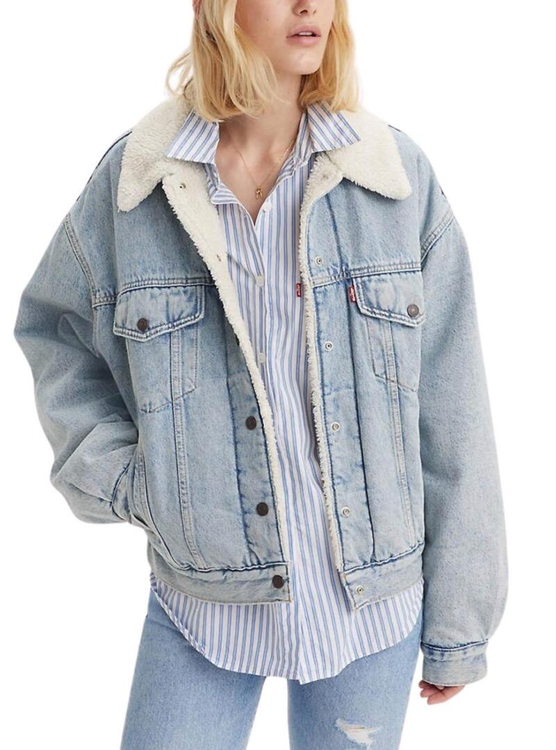 Giacca di jeans Levis. Modello 90S Sherpa. Vestibilità ampia. Spalle cadenti. Tessuto denim non elastico. Manica lunga. Foderata con sherpa. Tasche sul petto con patta. Tasche laterali. Chiusura frontale con bottoni. Il modello indossa la taglia S.