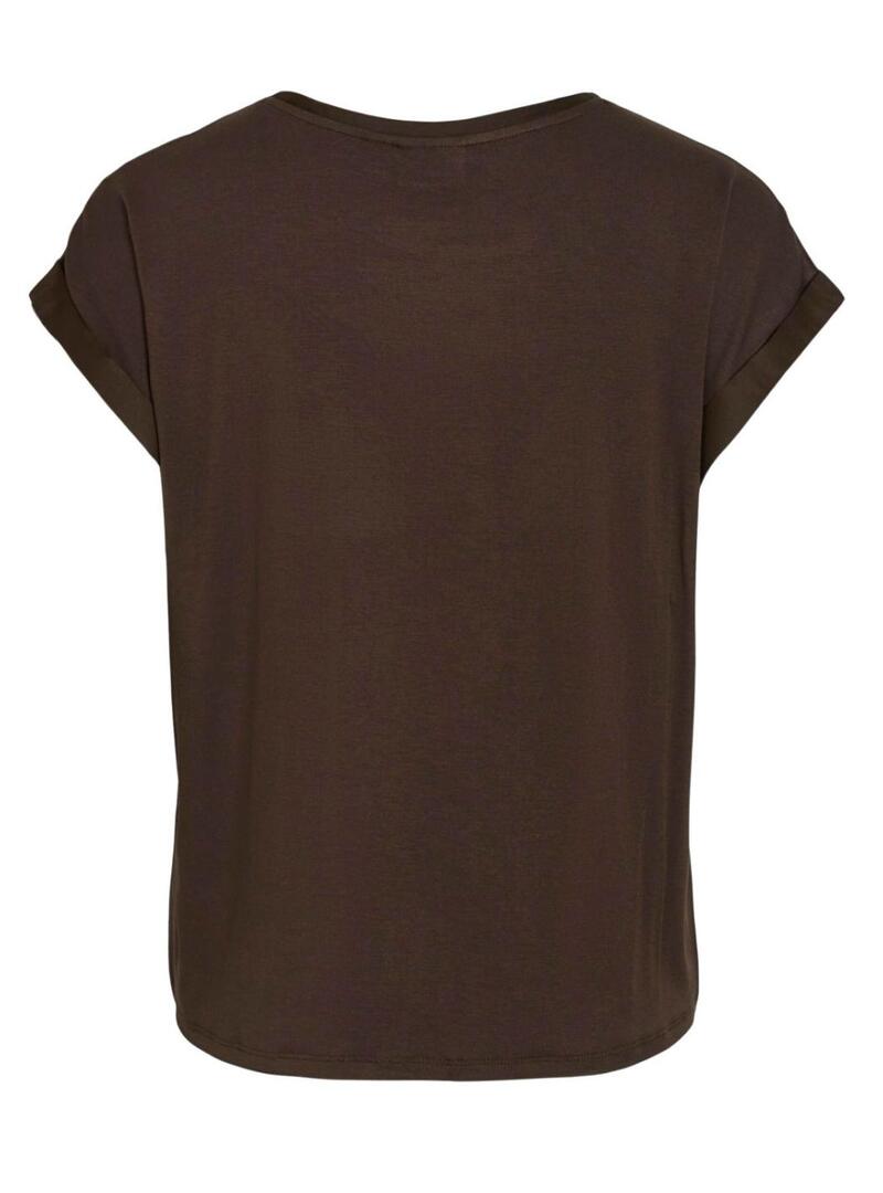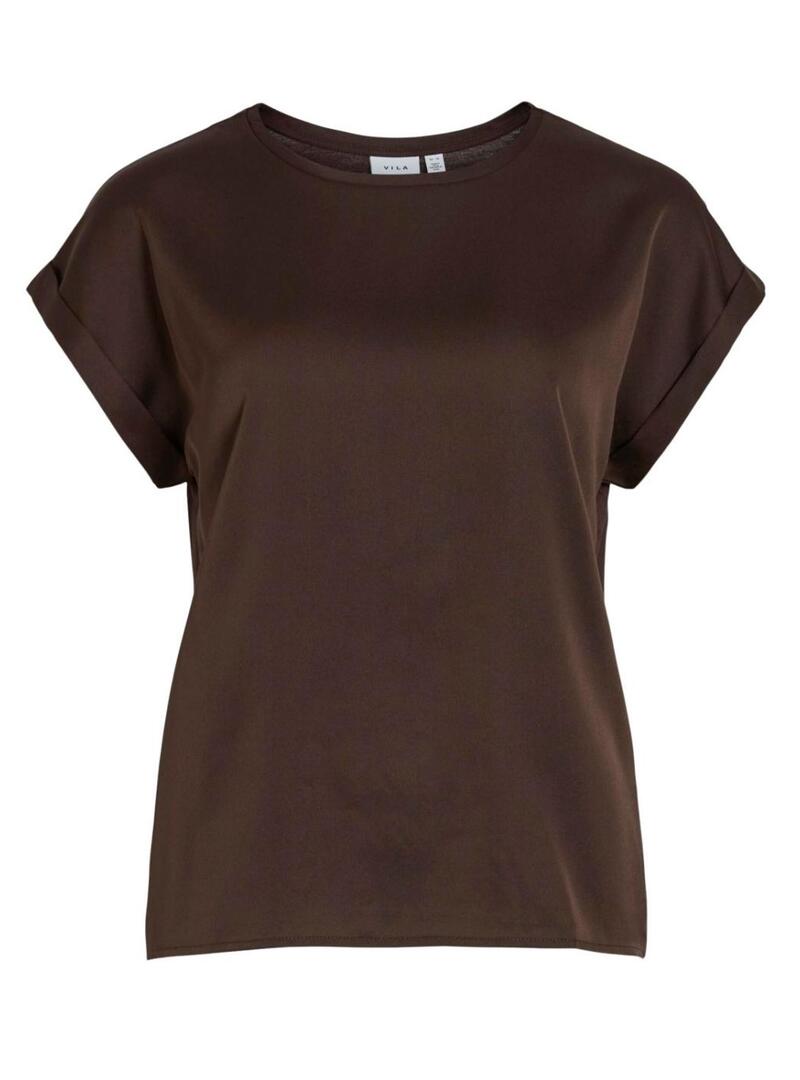 Top in raso di Vila. Modello Viellette. Colore marrone. Collo rotondo. Manica corta. Tessuto fluido e leggero.