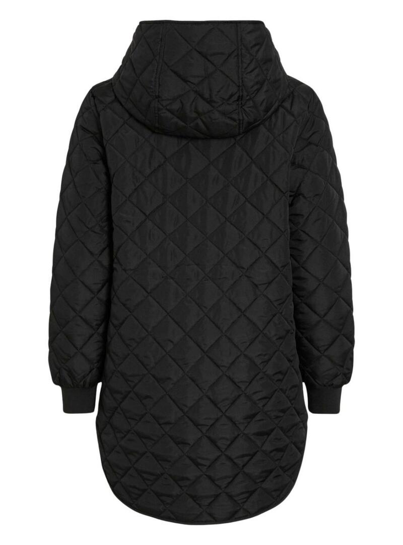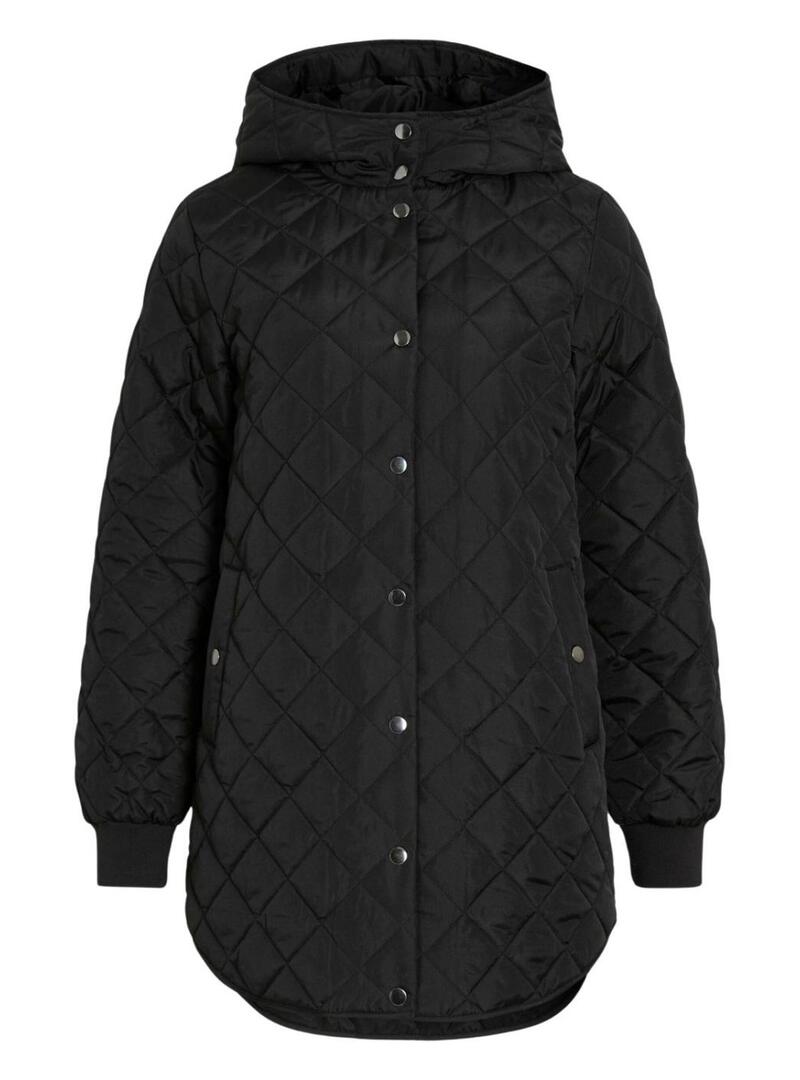 Cappotto trapuntato di Vila. Modello Vitate. Colore nero. Con cappuccio. Chiusura a bottoni a pressione. Taglio regolare. Tasche frontali con bottone. Motivo a rombi.